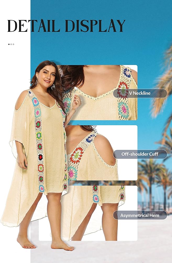 ❀【Breathable Material Loose CoverUps】: Soft and breathable lightweight Polyester fabric can keeps you cool on hot days perfectly.Protecting your skin away from summer hurt.Cool cover ups for summer beach,new arrival,different design.The beach coverup for women can be used as gifts for her, gifts for mom,wife and female friends