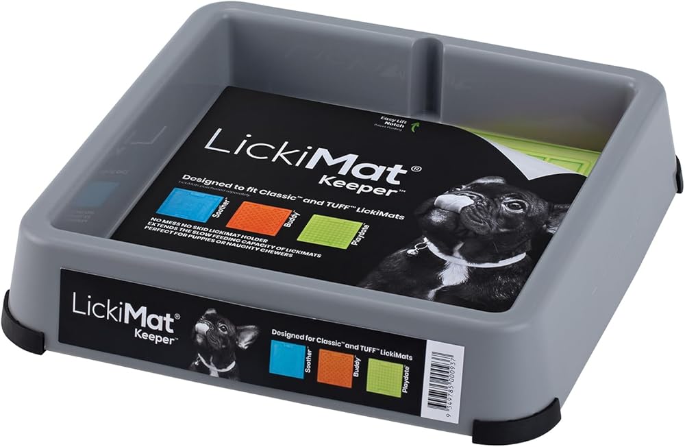 LICKIMAT Indoor Keeper Dog Feeding Station - Slow Feeder Lick Mat Keeper for Dogs Food, Treats, Yoghurt & Peanut Butter - Extend Licky Mats for Dogs into Full Feeder, Grey.