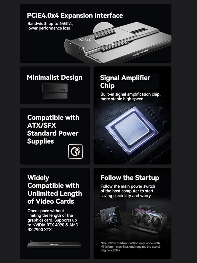 MINISFORUM DEG1 External GPU Dock Station, Mini eGPU Enclosure for RTX 4090, AMD RX 7900 XTX, Support ATX/SFX Standard Power Supplies, Oculink Interface Graphics Dock Station