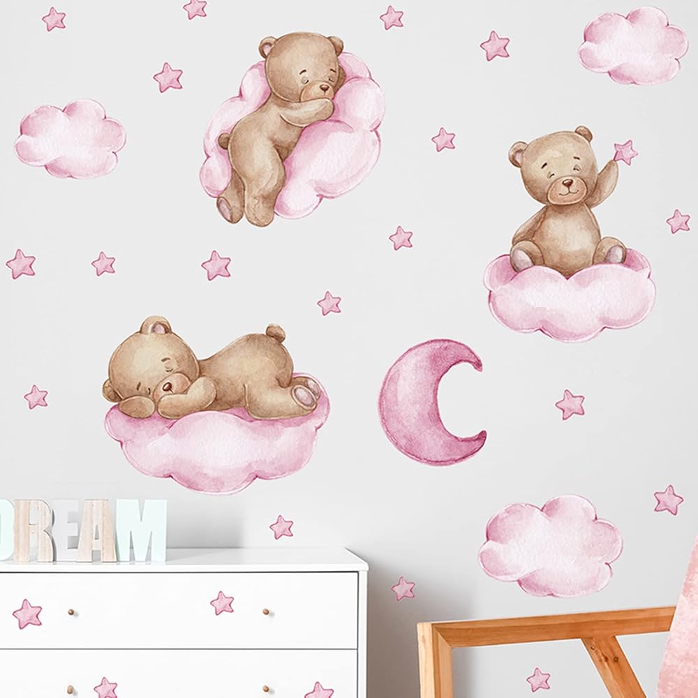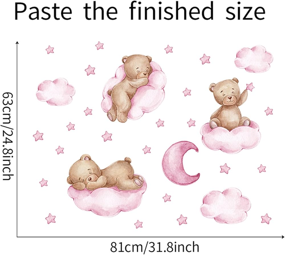 【Features】Stars Moon Cloud Tedy Bear wall sticker is ideal for daily use, Gives your home a fresh look and creates an enchanting and relaxing atmosphere. Perfect gift for your children, friends, lovers, etc.