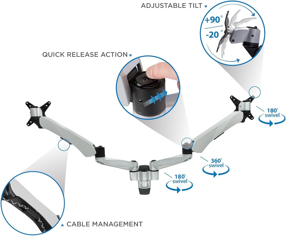 Mount-It! Dual Monitor Desk Mount | Pole Mounted Gas Spring Dual Monitor Arm | Premium Height Adjustable Computer Display Riser, VESA 75, 100 Fits Up to 32" Screens, Silver