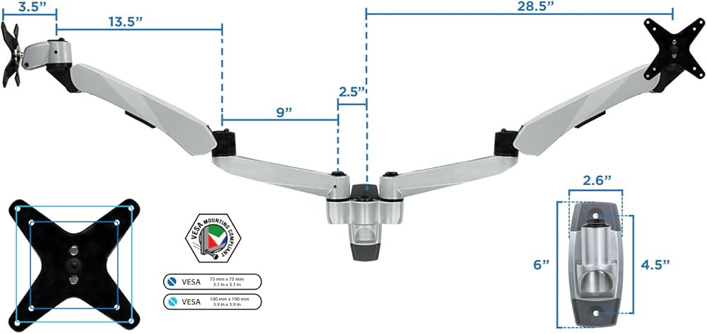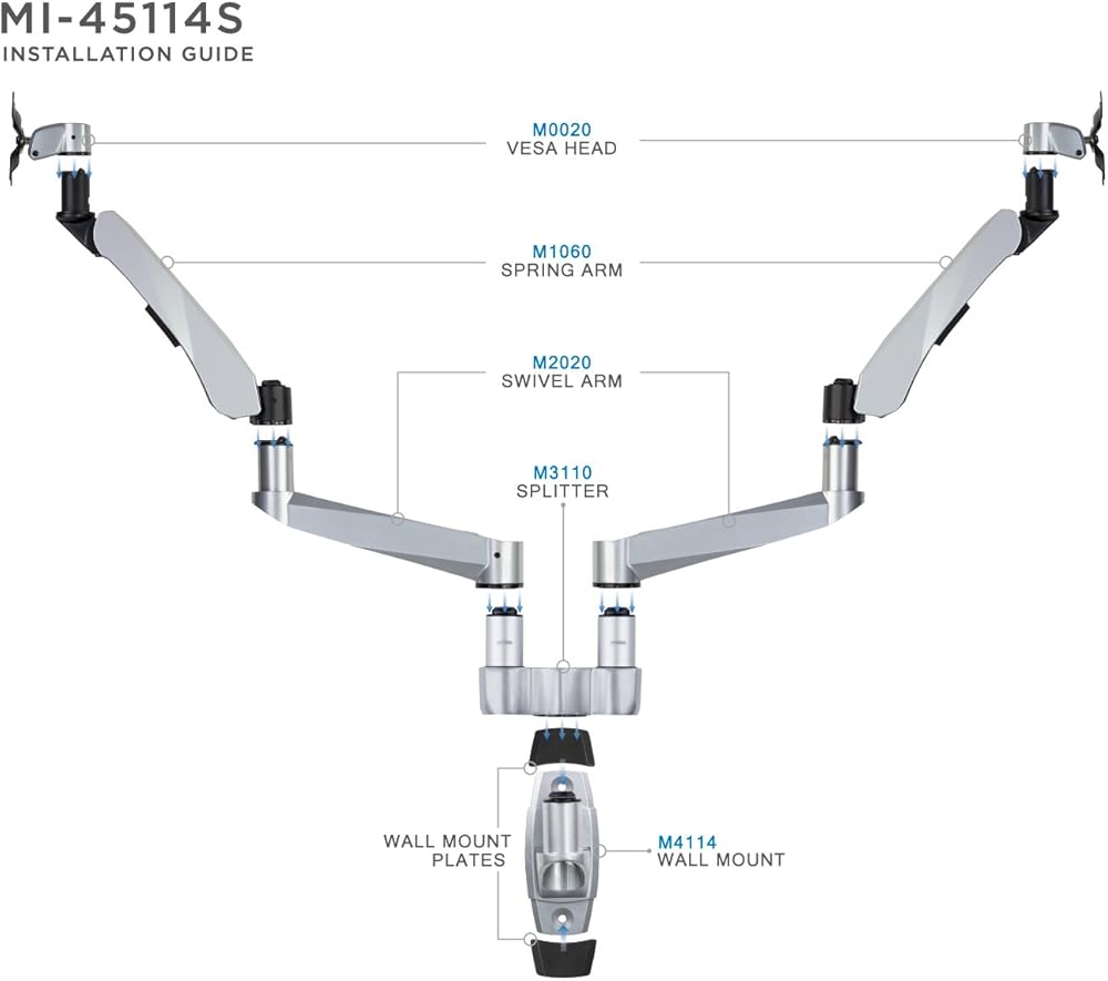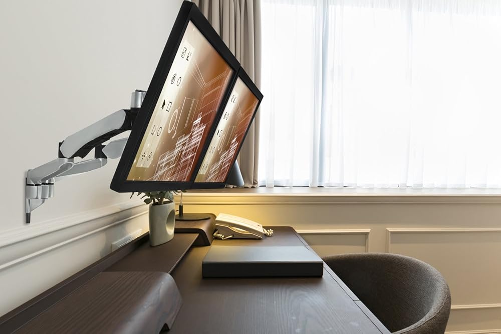 Mount-It! Premium Modular Dual Monitor Wall Mount Arms | VESA Wall Mount | Full Motion Gas Spring Arm Fits 17 19 21.5 24 27 32 Inch Computer Screens with 75 100 VESA Patterns | 19.8 Pound Capacity