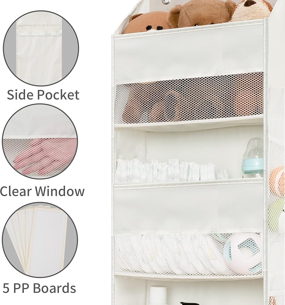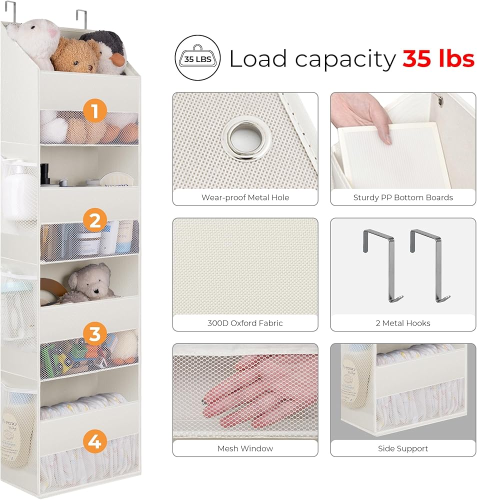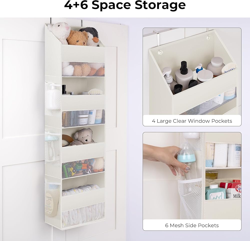 GRANNY SAYS Over The Door Organizer, 4-Shelf Behind The Door Storage with 6 Pockets and Clear Window, Waterproof Anti Tilt 35lb Large Capacity Hanging Organizer for Baby Diapers, Toys, Beige