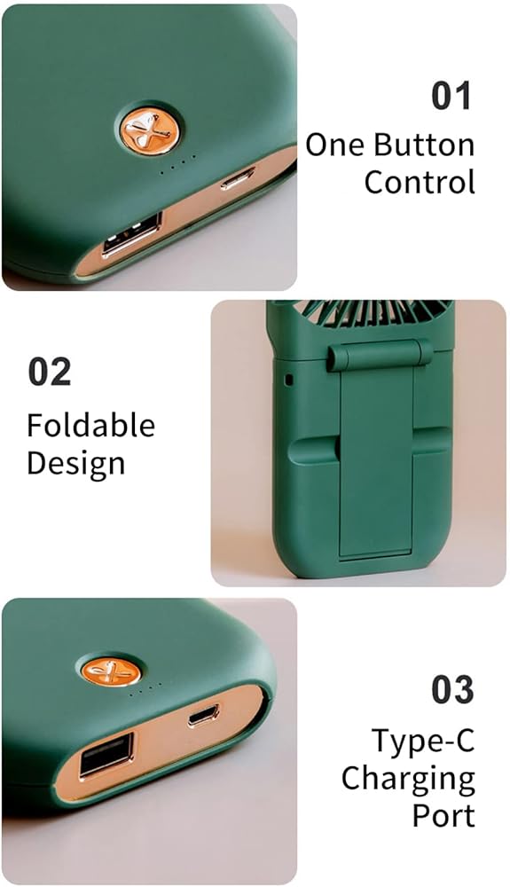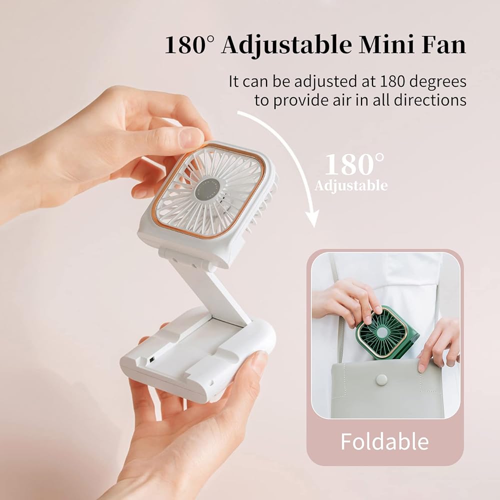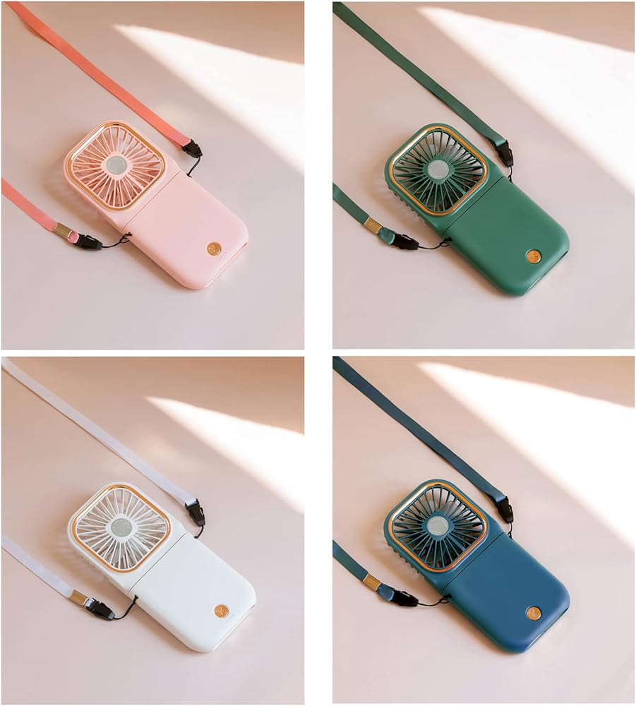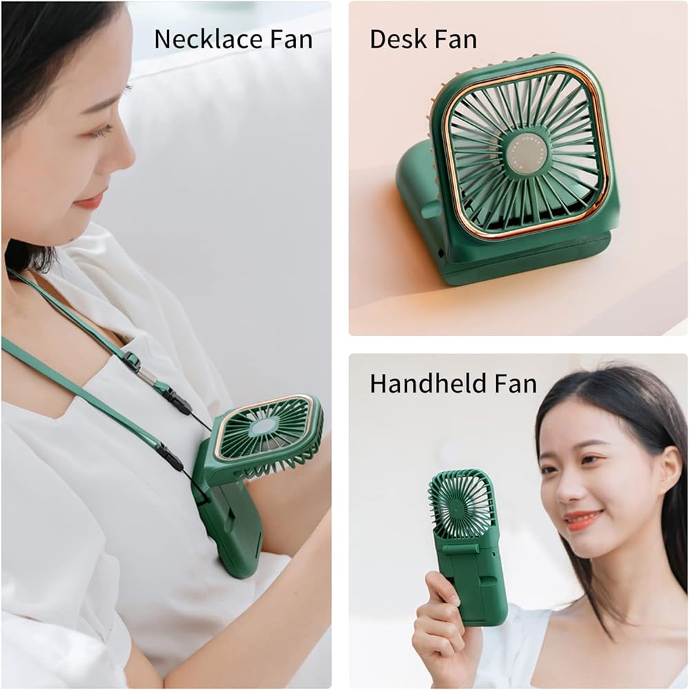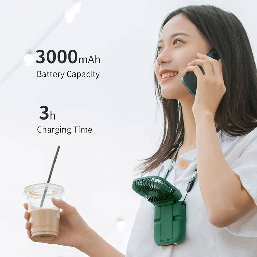Necklace Fan Mini Wearable Fans Foldable Hanging Fan USB Rechargeable 3 Speed Fan with Phone Holder for Outdoor Traveling