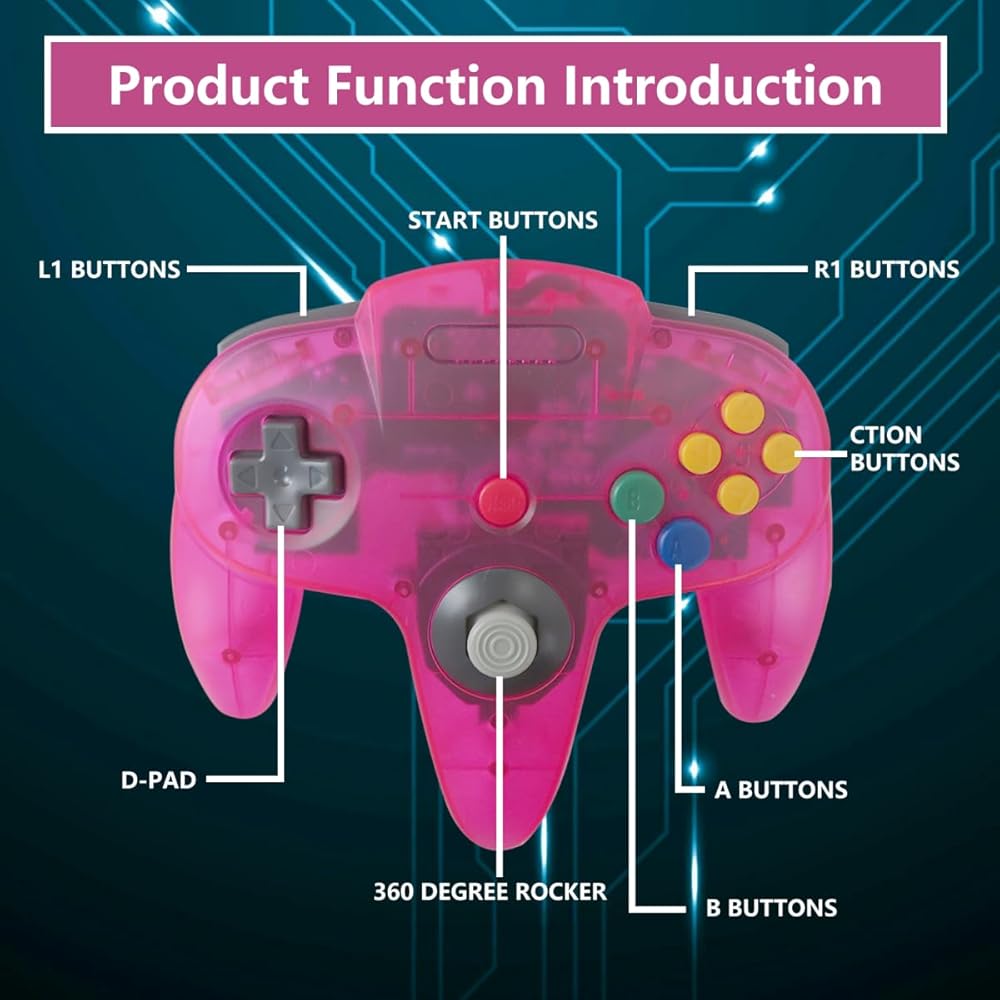 Fitment:Works exactly for Classic 64 (N64 video game console), perfect for Mario Kart 64, Perfect Dark, Super Mario 64,Super smash and many other classic N64 games.Notice:NOT compatible with Nintendo Switch / Gamecube System/Wii/Wii U Console and PC computer