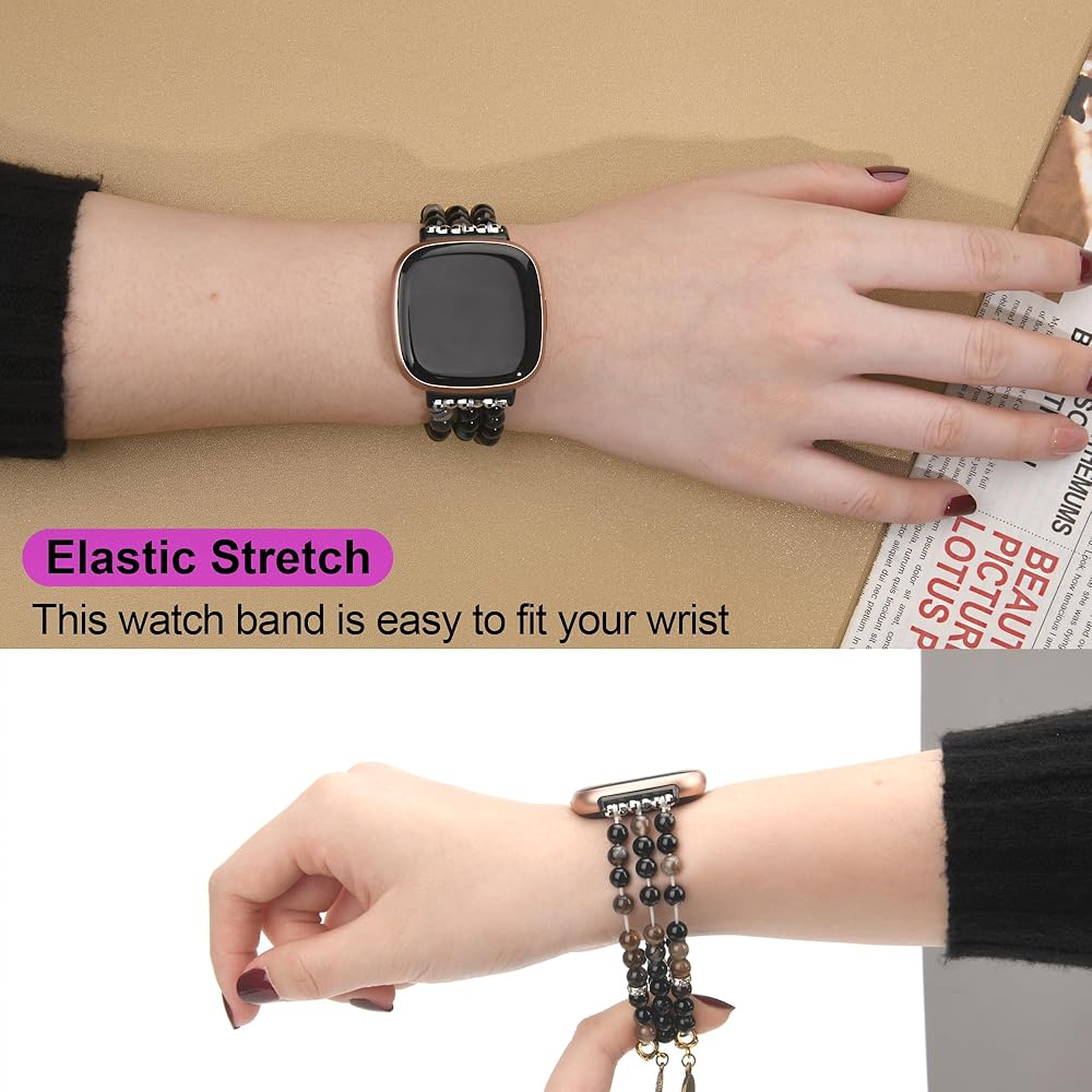 【Comfortable & Breathable】: This stretchy band for Fitbit Versa 4/Versa 3 dopts natural stone bead material, give you a silky comfy. It is breathable and comfortable to wear, non-irritating to your skin.suitable for office, daily use, party and any other important occasions. Adding you more touch of feminine and elegance, enjoy your beautiful stylish watchband