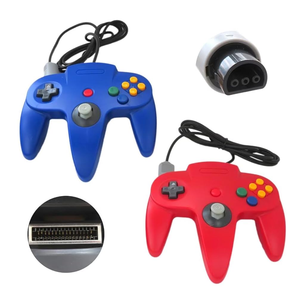 llololl bgbg 2x Classic Wired Gamepad Joystick Replacement Compatible for Nintendo 64 N64 Video Game Console, with 6 FT Cable, Gift for Nostalgic Gamers (Blue & Red)