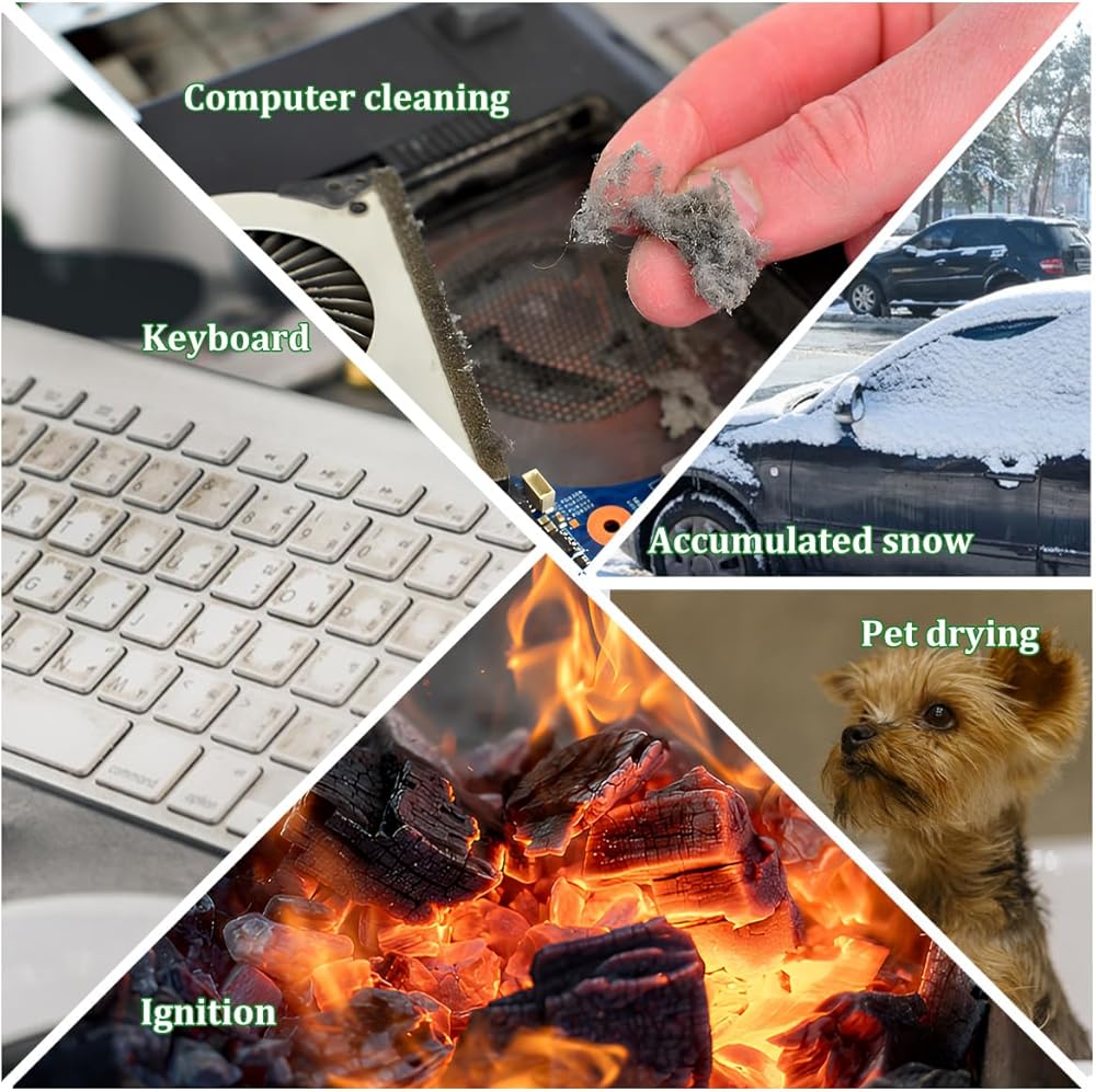 Versatile Functionality:This air dust blower isn't just a fan—it's a vacuum too! With 4 specialized nozzles, it tackles diverse cleaning needs effortlessly. From furniture to keyboards, it's your go-to for quick dusting and thorough suction. Transition seamlessly from home to car cleaning with the included dust filter nozzle