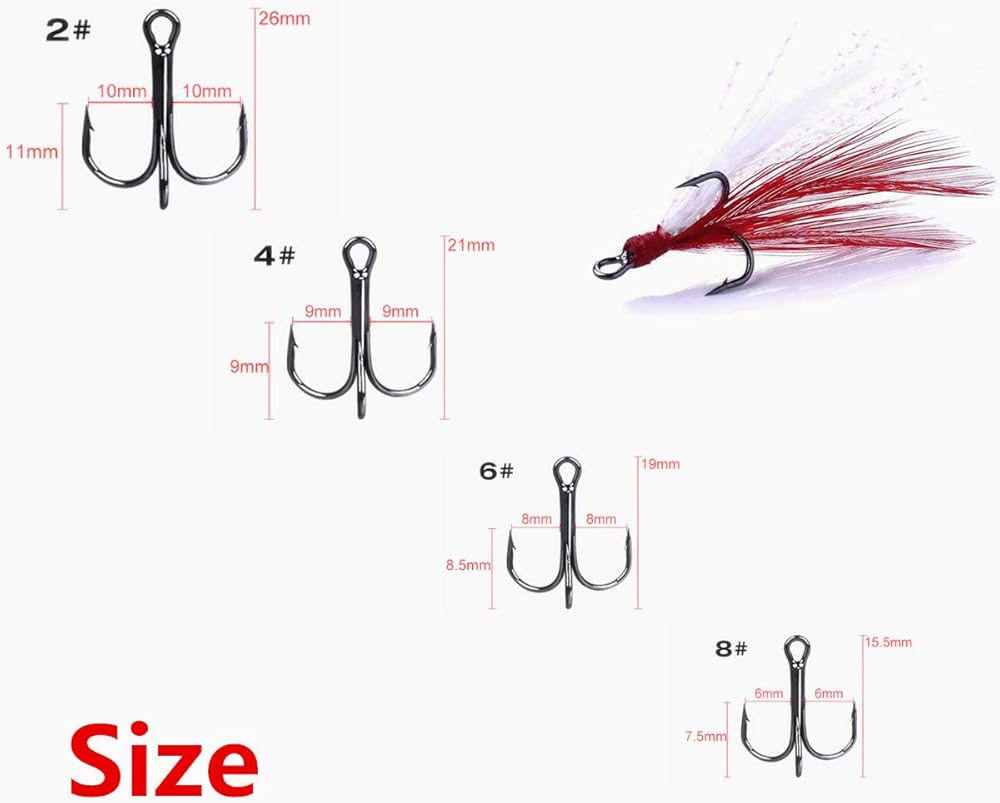 Pro Angler-Approved Size Variety – Master every fishing scenario with 4 strategically chosen bass treble hook sizes (#2 #4 #6 #8) that perfectly match crankbaits, spinnerbaits, spoons, and topwater lures for versatile freshwater & saltwater applications. Target species from panfish to trophy pike with confidence.