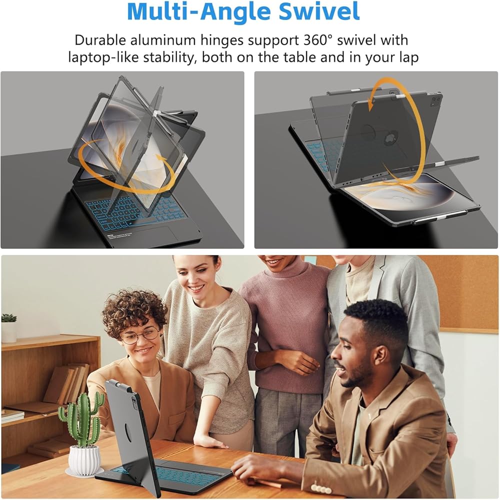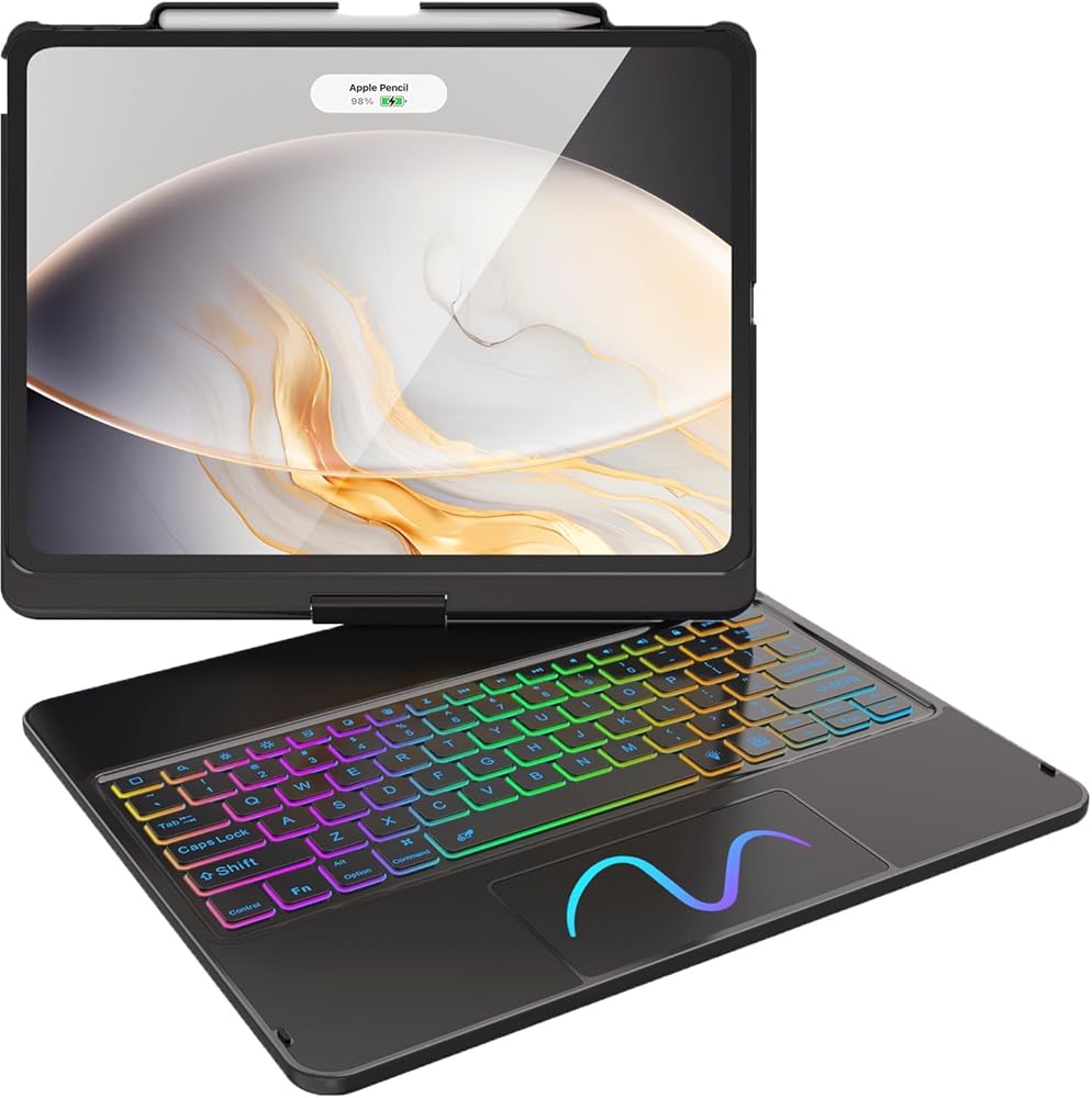 FUWANG Touch Keyboard Case for iPad Air 13 inch M4 2026/M3 2025/M2 2024 & iPad Pro 12.9 6th 5th 4th 3rd Gen, 360° Swivel Backlit for iPad Air 13 inch Case Keyboard with Multi-Touch Trackpad, Black