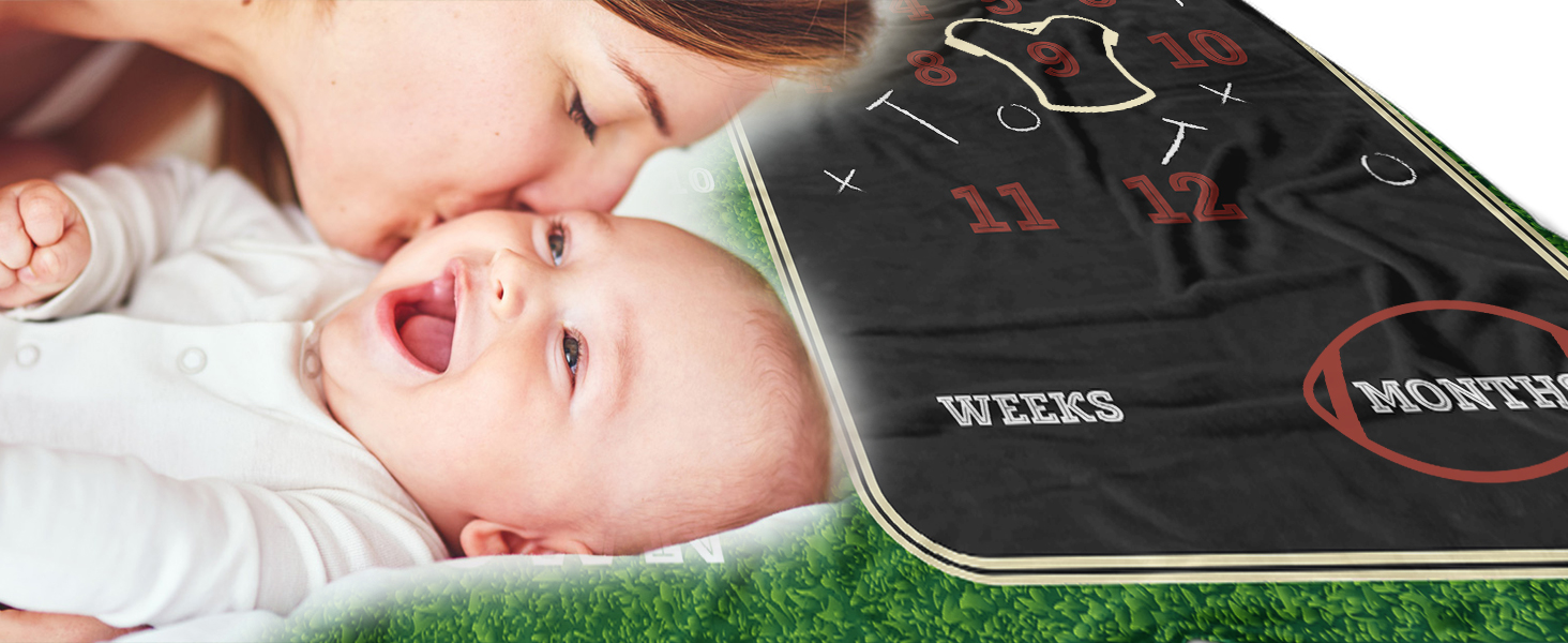 🏈 𝗧𝗢𝗨𝗖𝗛𝗗𝗢𝗪𝗡 𝗪𝗜𝗧𝗛 𝗘𝗫𝗖𝗟𝗨𝗦𝗜𝗩𝗘 𝗙𝗥𝗔𝗠𝗘𝗦 - What sets our milestone blanket apart are the three exclusive, football-themed frames that come included for each month's photo session. Customize these frames to make your baby's milestones even more special! They add the perfect finishing touch, making this blanket a standout baby shower gift for any football-loving parent-to-be!