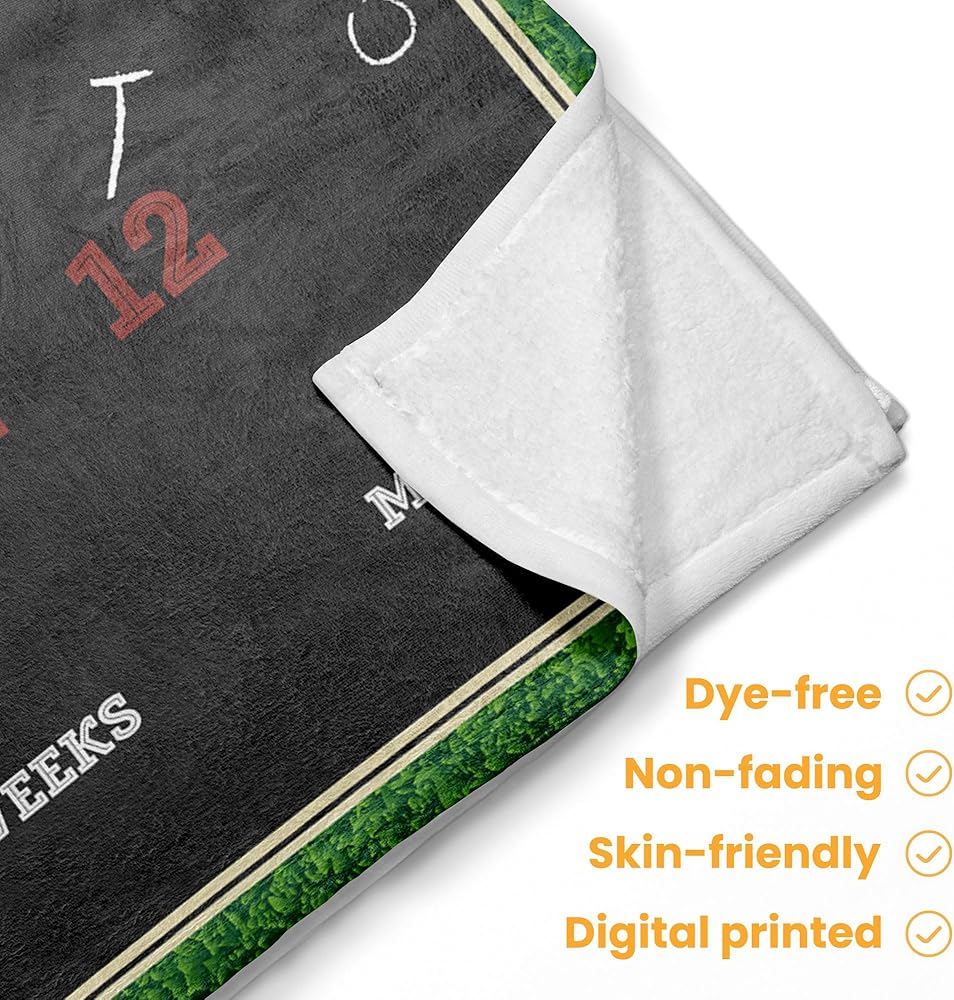 🏈 𝗨𝗟𝗧𝗥𝗔-𝗦𝗢𝗙𝗧, 𝗙𝗟𝗨𝗙𝗙𝗬, 𝗔𝗡𝗗 𝗩𝗜𝗕𝗥𝗔𝗡𝗧 - Our baby boy milestone blanket is carefully crafted from selected high-quality fabrics, providing a cozy and gentle embrace while ensuring 100% skin-friendliness for your little champ. Thanks to DTG printing technology, the premium polyester printing keeps colors vibrant even after repeated washes, making the blanket a lasting keepsake as your child grows. An adorable and durable choice!