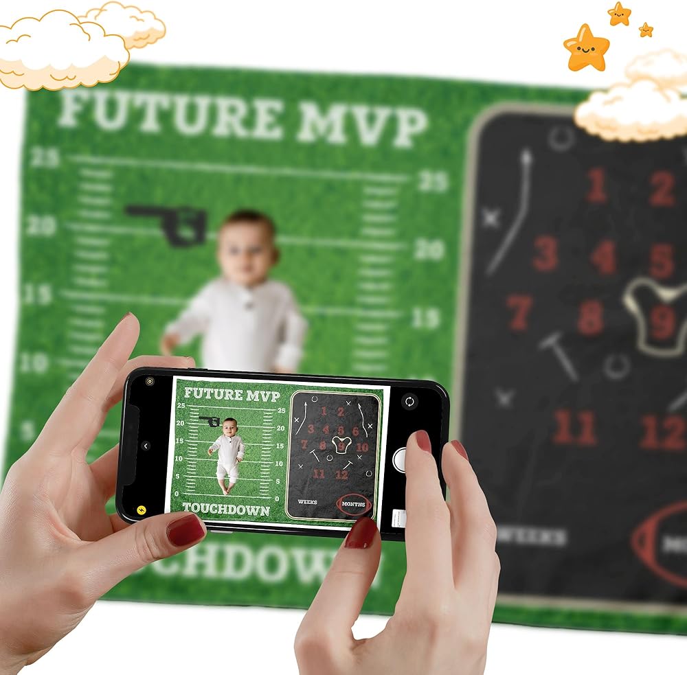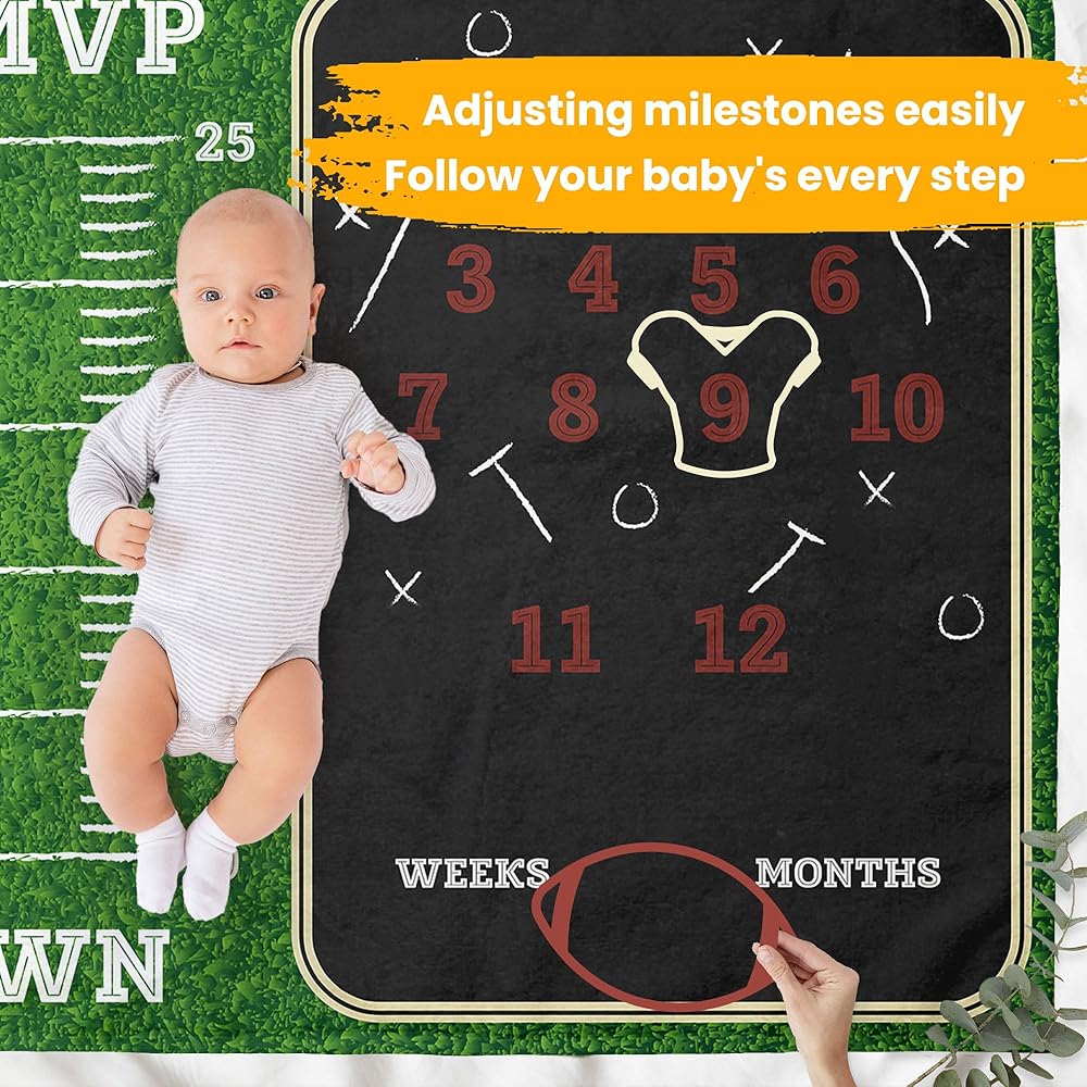 🏈 𝗖𝗔𝗣𝗧𝗨𝗥𝗘 𝗬𝗢𝗨𝗥 𝗕𝗔𝗕𝗬'𝗦 𝗠𝗜𝗟𝗘𝗦𝗧𝗢𝗡𝗘𝗦- Document every delightful milestone of your baby boy's first year with our charming football-themed milestone baby blanket. This essential monthly milestone blanket for boys is the perfect canvas to chronicle your little one's growth from a newborn to a playful toddler!