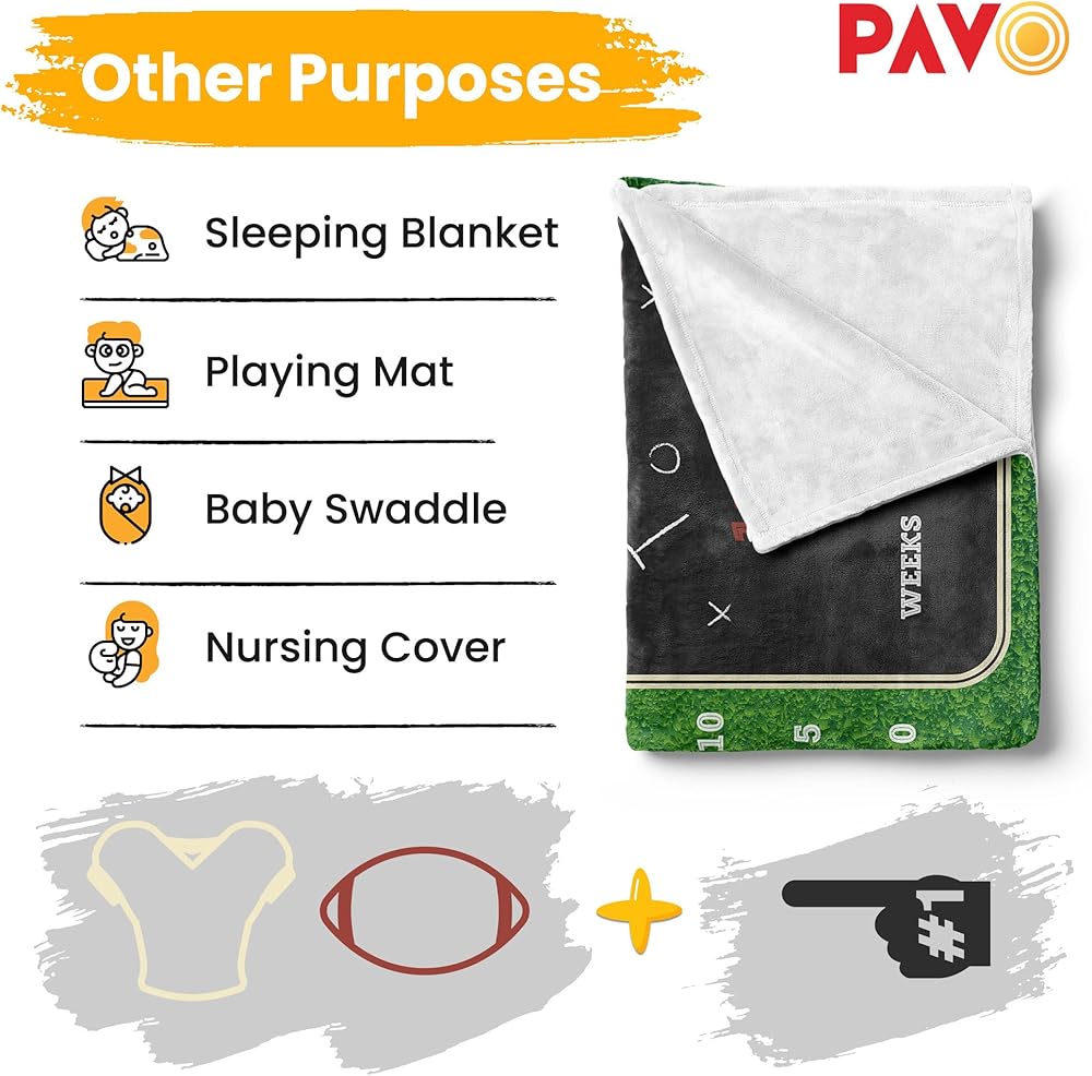 Pavo Premium Football Milestone Blanket for Baby Boys - Includes 3 Exclusive Frames - Personalized Monthly Baby Milestone Blanket for Newborn Ultra-Soft and Cozy 60"x40" Keepsake