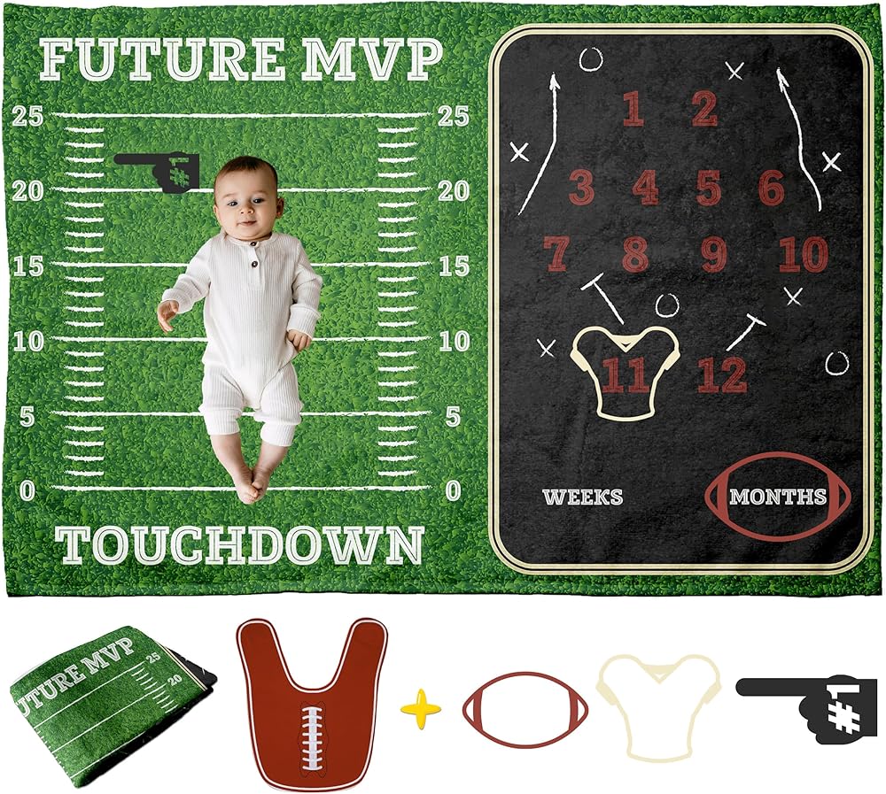 🏈 𝗣𝗘𝗥𝗙𝗘𝗖𝗧 𝗚𝗜𝗙𝗧 𝗜𝗗𝗘𝗔 - Whether it's for a baby shower, baby's birthday, or a ‘just because' gift, this football-themed milestone blanket is the ultimate present. Its versatility, personalized features, and football-themed design make it a cherished gift for any parent-to-be and an adorable addition to any baby boy's football-themed nursery. It's a touchdown gift that will be remembered and appreciated!