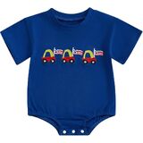 Baby 4th of July-- USA print baby boy girl fourth of july outfit, newborn oversized romper, infant American flag onesie, baby red white and blue romper, 4th of july boy girl matching outfits, crewneck short sleeve casual jumpsuit, button snaps closure easy to change diapers, perfect one piece Independence Day outfit.