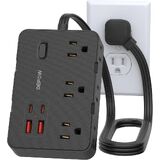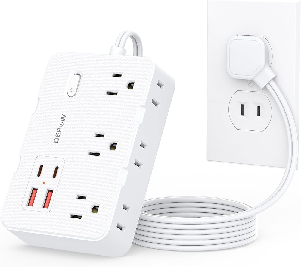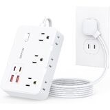 【10-in-1 Desktop Power Strip】- Power up to 10 devices! Features 6 AC outlets(1625W/13A), 2 USB-C and 2 USB-A ports (total output 12W/2.4A), Charge phones, laptops, appliances—perfect for offices, kitchens, and cramped spaces. The unique side-mounted two prong plugs offer flexible adapter use.