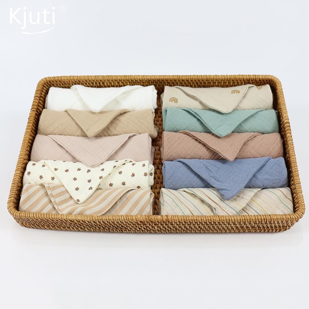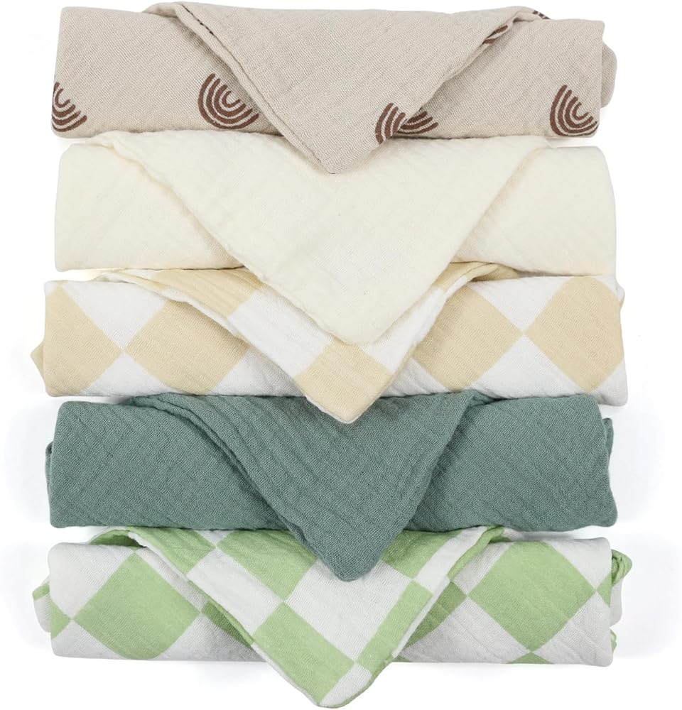 Ultra-soft and absorbent: The 4-layer muslin cotton design of Kjuti washcloths provides ultra-softness and absorbency, perfect for wiping away spills and messes.