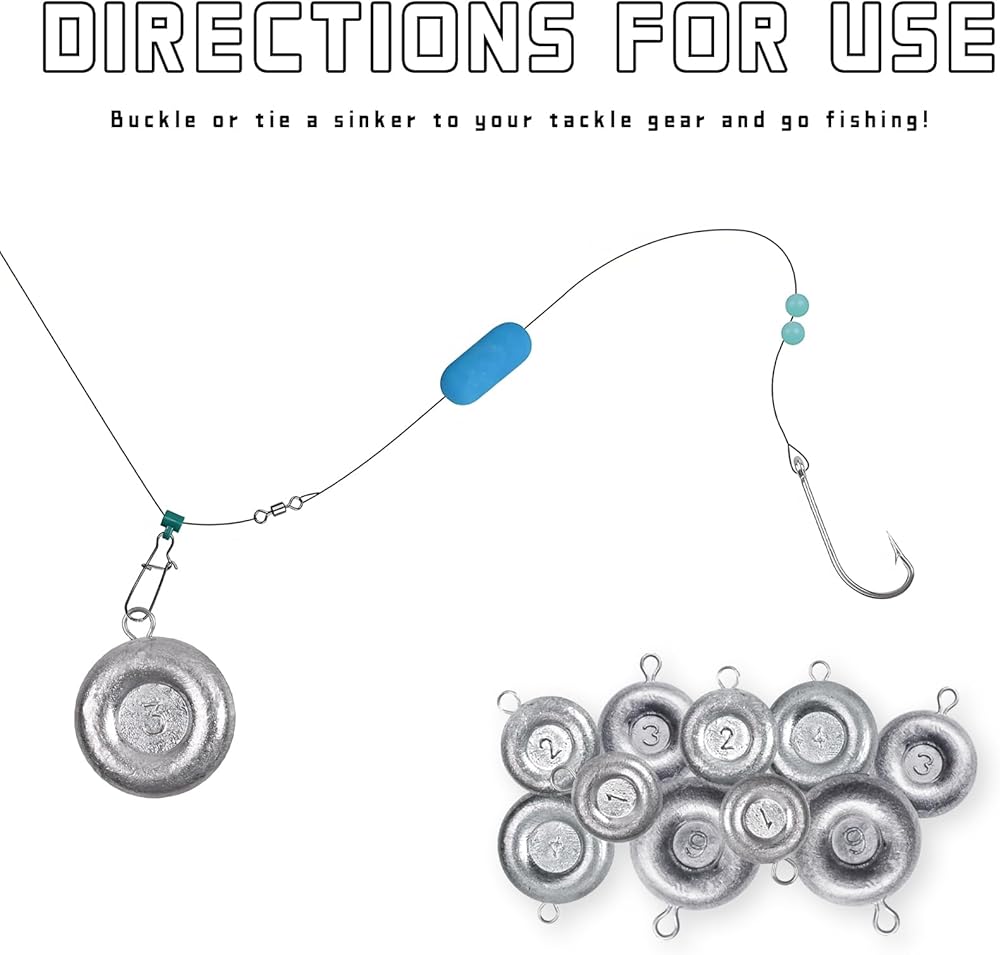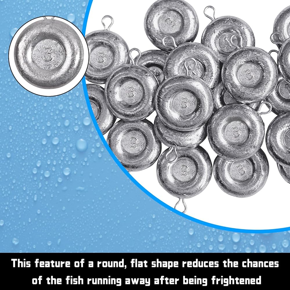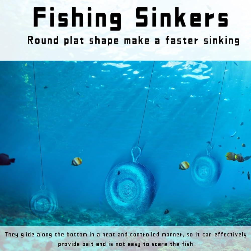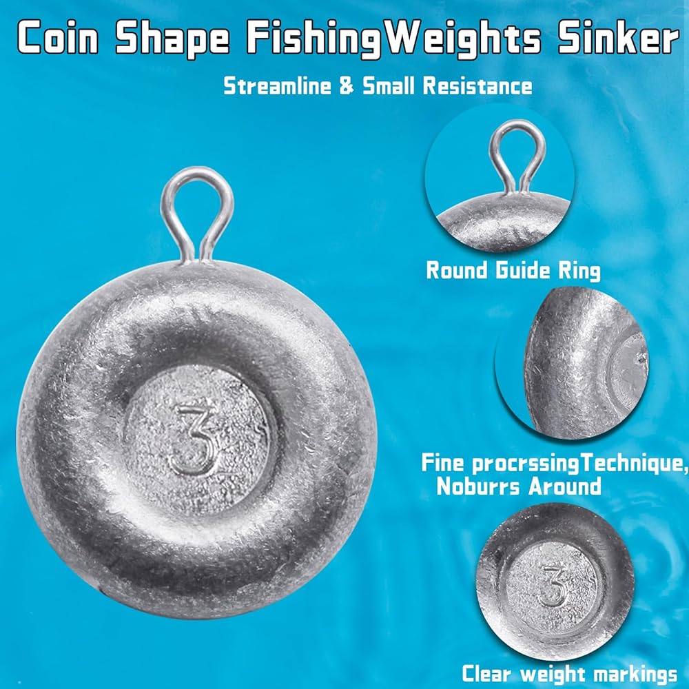 COIN SINKERS: Those round flat shaped designed will lay on bottom and prevents rolling, benefit for holding bait against heavy waves and currents,Ideal for river bank surf fishing catfishing
