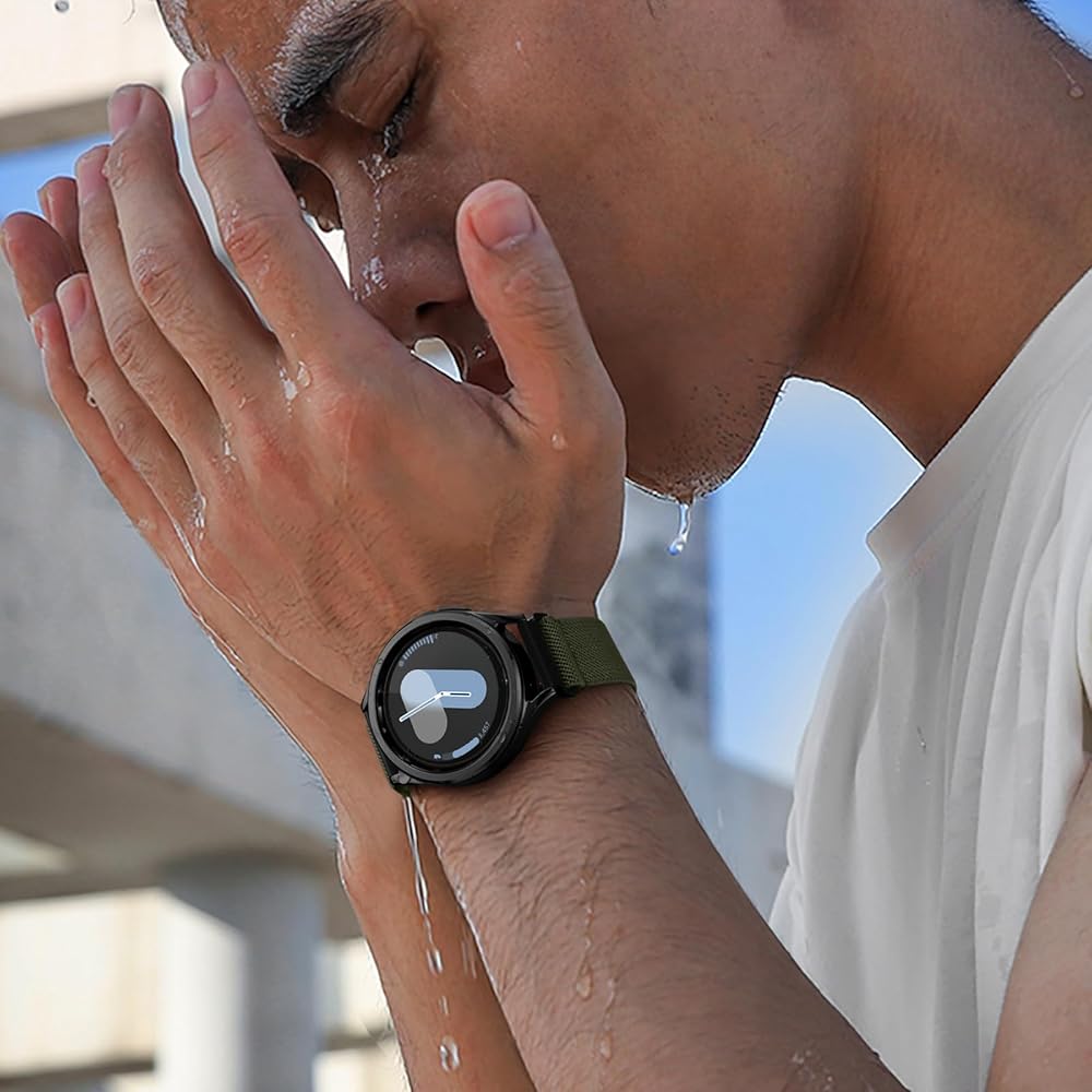 【Comfort & Breathable】The nylon strap is made of soft and skin-friendly elastic nylon material compatible with Samsung Watch bands, which makes for Galaxy Watch 6 band soft, light, breathable & skin-friendly and comfortable to wear. Compatible with Samsung Galaxy Watch 7 bands are suitable for all-day sports and daily life, bringing you a fresh comfortable wearing experience.