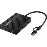 【Dual 4K@60Hz Extended Displays】Transform your laptop into a productivity powerhouse! This USB-to-HDMI adapter adds two crystal-clear 4K monitors (up to 60Hz) via a single USB-C/USB-A port. Perfect for multitasking, office work, or coding—seamlessly compatible with Mac M1/M2/M3 and Windows PCs. (Note: This displaylink adapter Not for gaming/HDCP content.)
