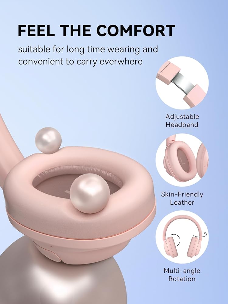 1MORE SonoFlow SE HQ31 Wireless Bluetooth Headphones -42dB Noise Cancelling Over-Ear Bluetooth Headset with Hi-Res Audio, 90H Playtime, LDAC, All-Day Comfort for Travel Work Gaming, Pink