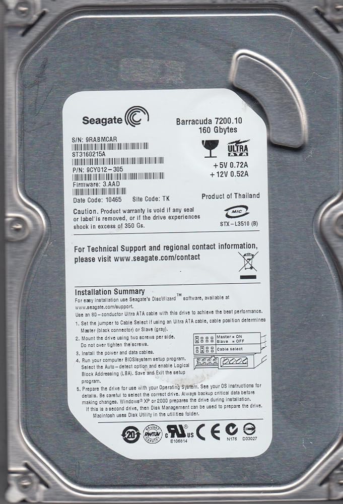 Product Description Seagate Barracuda 7200.10 - hard drive - 160 GB - ATA-100Type Hard drive - inter