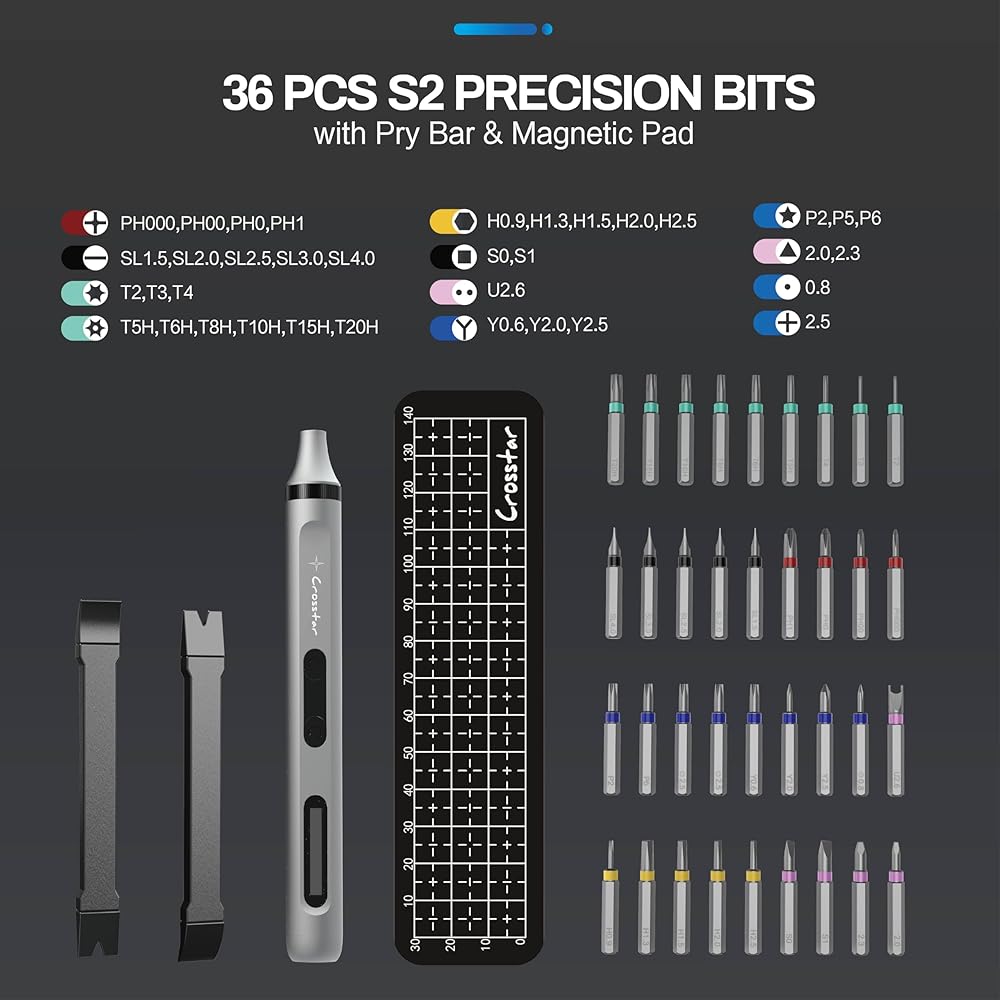 Crosstar 42-in-1 Small Precision Screwdriver Set, Professional Magnetic Mini Repair Tool Kit for Phone, Computer, Watch, Laptop, Macbook, Ring Doorbell, Eyeglass, Electronic (Electric)
