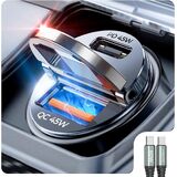 【UPGRADE SMALLEST BODY, FLUSH MOUNT】: The smallest car charger iPhone on the market until now. With a tiny thumb-sized (Size: 1.72inch*0.86inch*0.86inch) body, snug and flush with outlet does not protrude and gets in the way, perfectly hide in your usb c cigarette lighters. The usb car charger port is also equipped with a blue LED light, so you can easily find the charging location while driving at night.