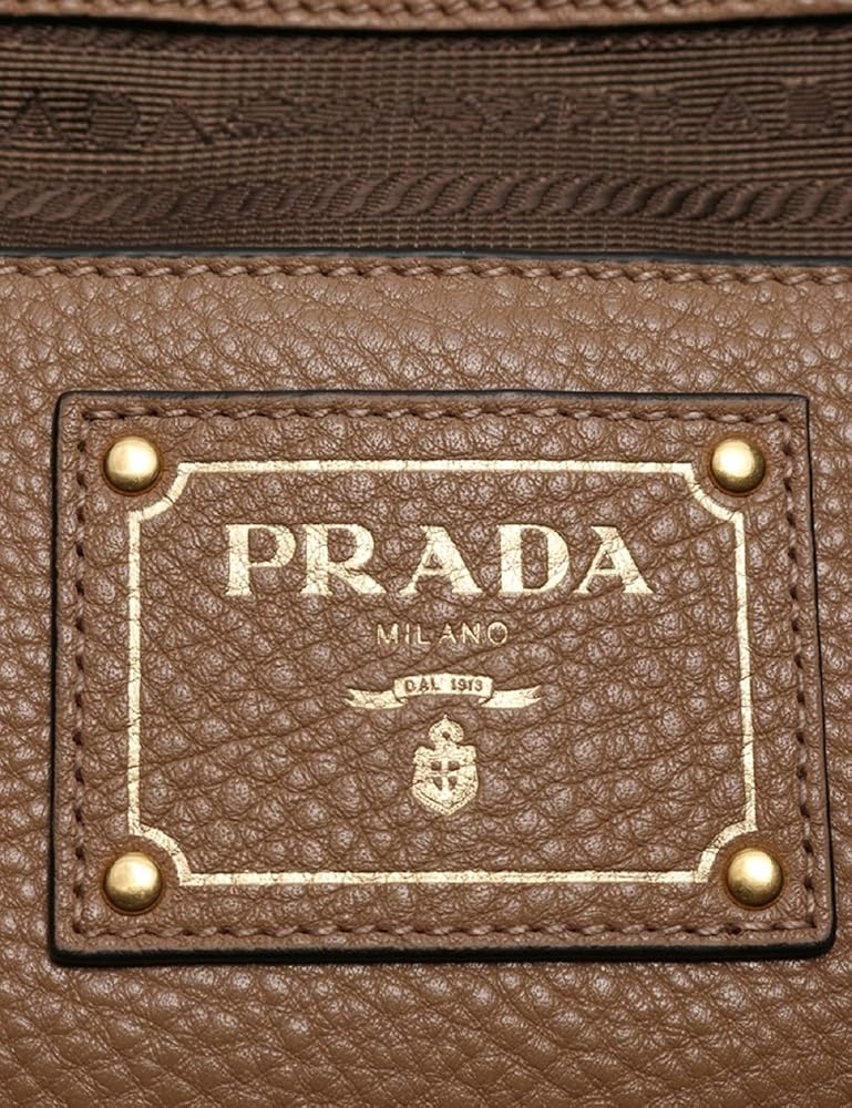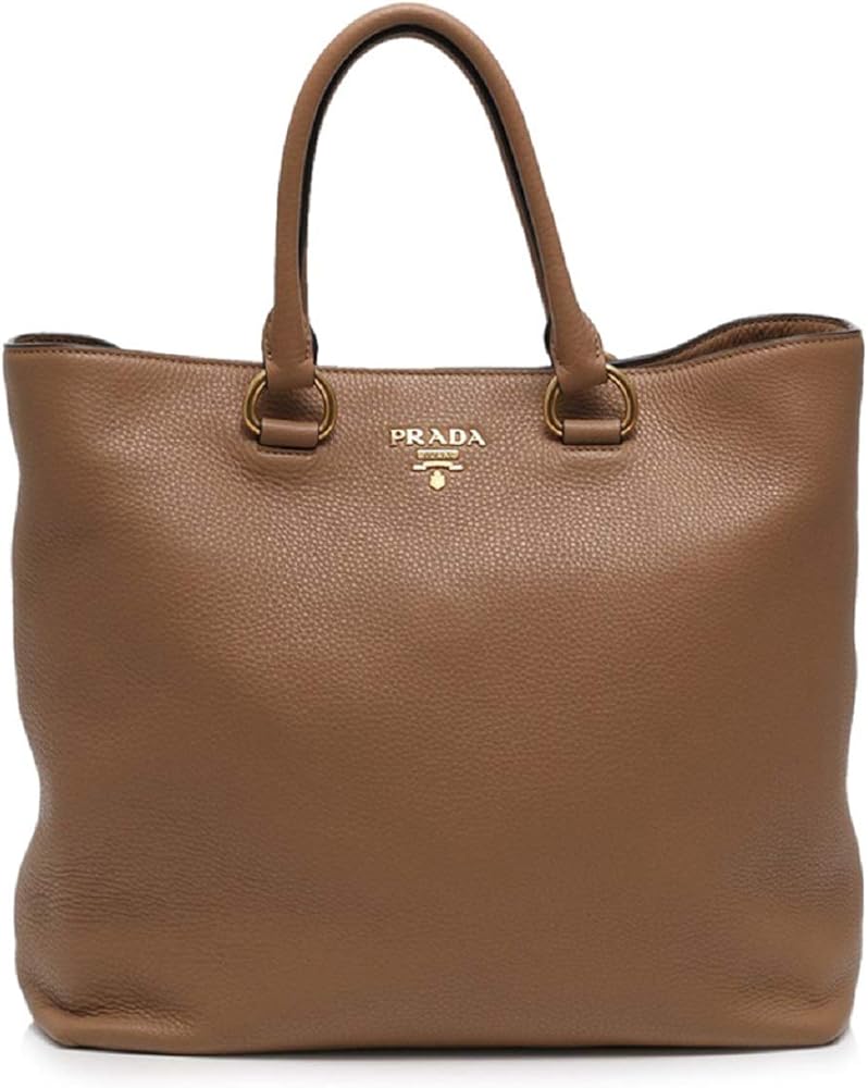 This Prada Women's Brown Vitello Phenix Leather Shopping Tote is the perfect bag to shop and run your errands with. Prada's luxurious Vitello Phenix handbag is the ideal designer tote for carrying all of your belongings in. There is plenty of storage space to store your personal items. There are three interior pockets and the snap closure makes it easy to access your belongings. This is also a great travel handbag to carry on trips or airplanes when you are on the go. This is such a classic Prada design and goes perfect with everyday looks. Includes authenticity cards and Prada dust-bag. Shopping Tote Open Closure Gold-tone Hardware Removable/Adjustable Shoulder Strap Strap Drop: 20" inches Drop Handles: 7" inches Measurements: 14" x 6" x 12" (lwh) in inches Interior: Three interior pockets Includes authenticity cards and Prada Dust bag Made in Italy Model: 1BG865 Brown. Leather