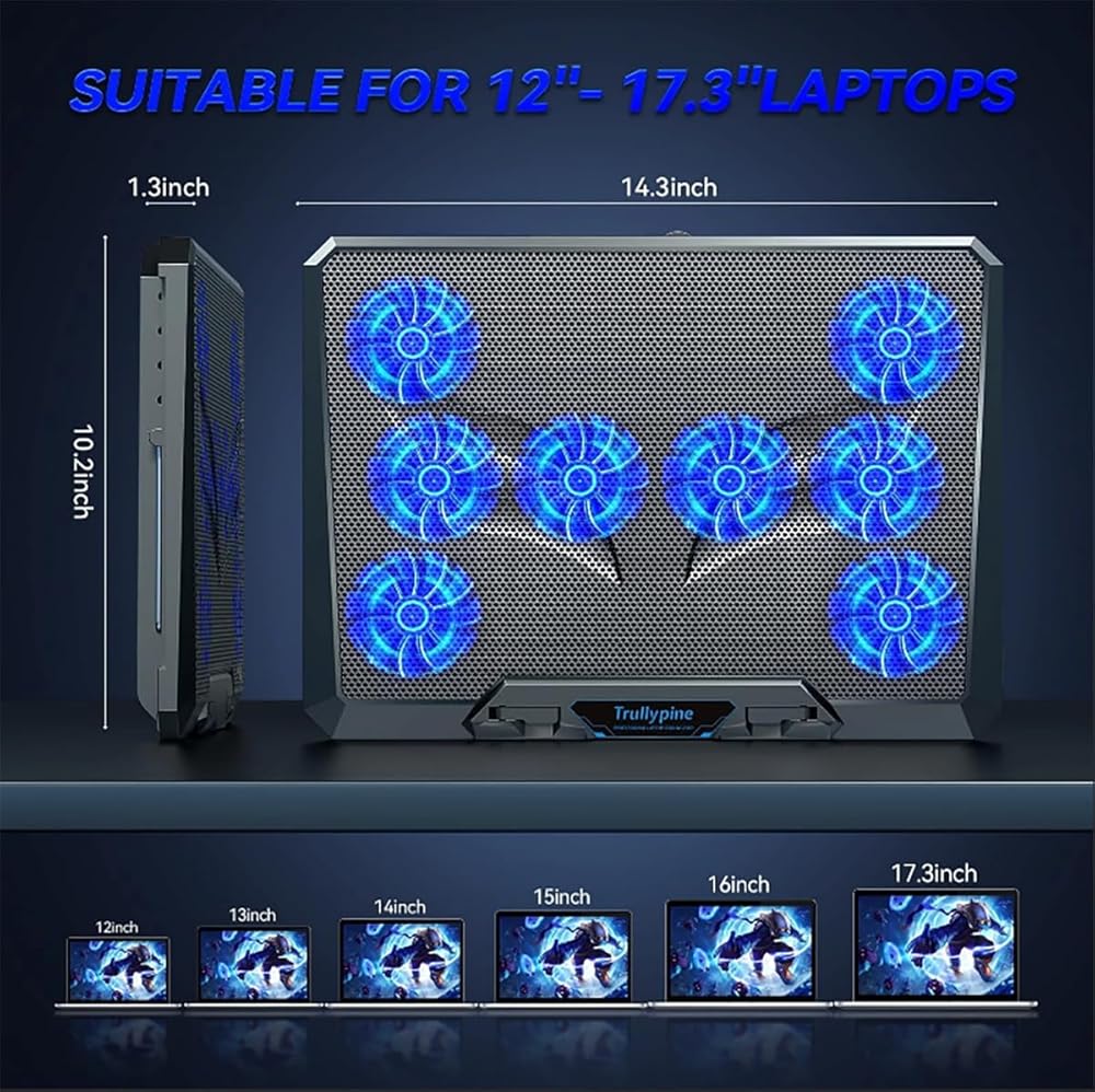 • ✅ 8-Core Deep Laptop Fans- Experience superior cooling with 8 high-speed silent turbo fans that provide comprehensive heat dissipation, essential for maintaining peak performance during gaming,video streaming, or extended work sessions.