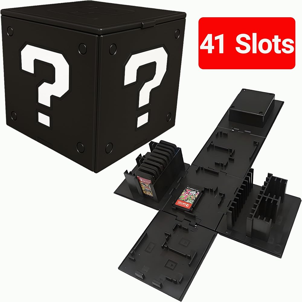 Switch Cartridge Case Holder Cube 41 Slots Compatible With Nintendo Switch 2 & Switch & Oled & Lite, Portable Game Storage Case Cute Retro Themed Travel Game Card Storage Question Mark Block Box Black
