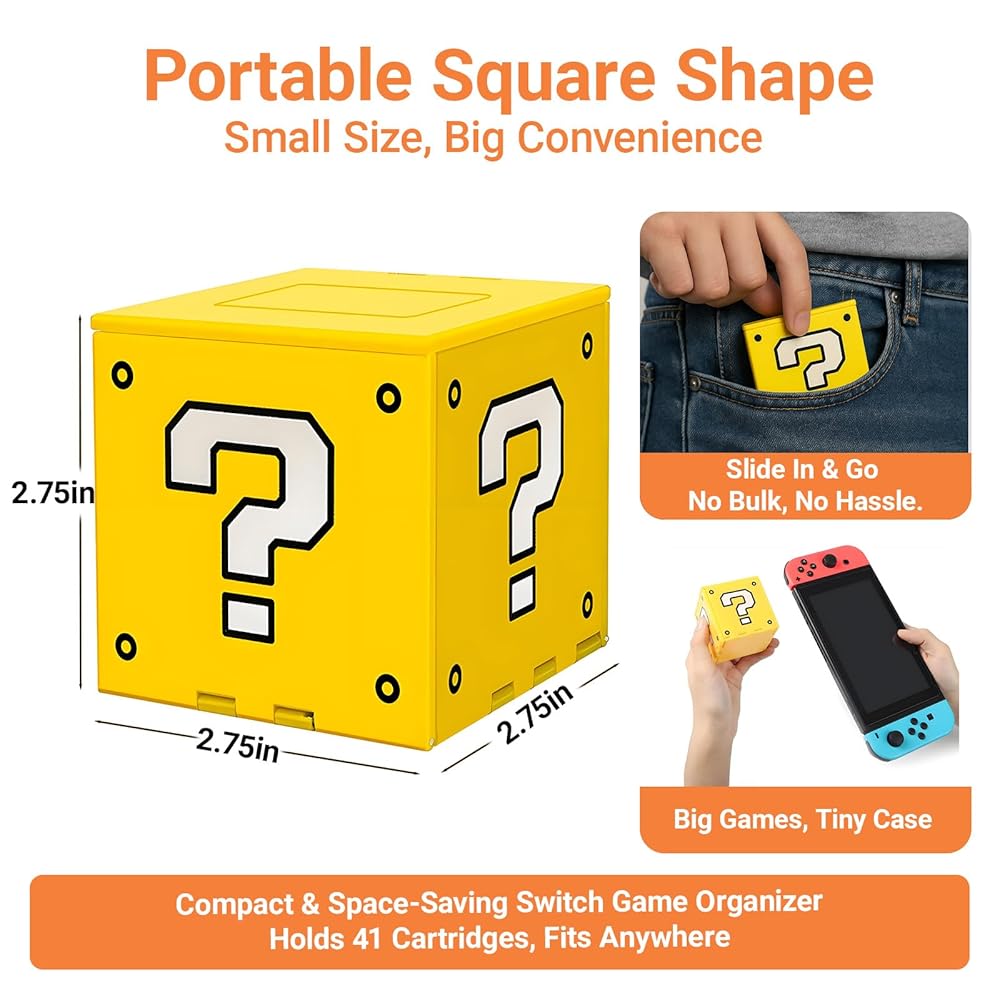 Retro Style Design|Practical And Beautiful: Classic question mark block game theme pattern design brings a full sense of nostalgia. It can not only be used as a game card storage box, but also a great room decoration item, showing the player's personality and enhancing the atmosphere in the corner of the game.