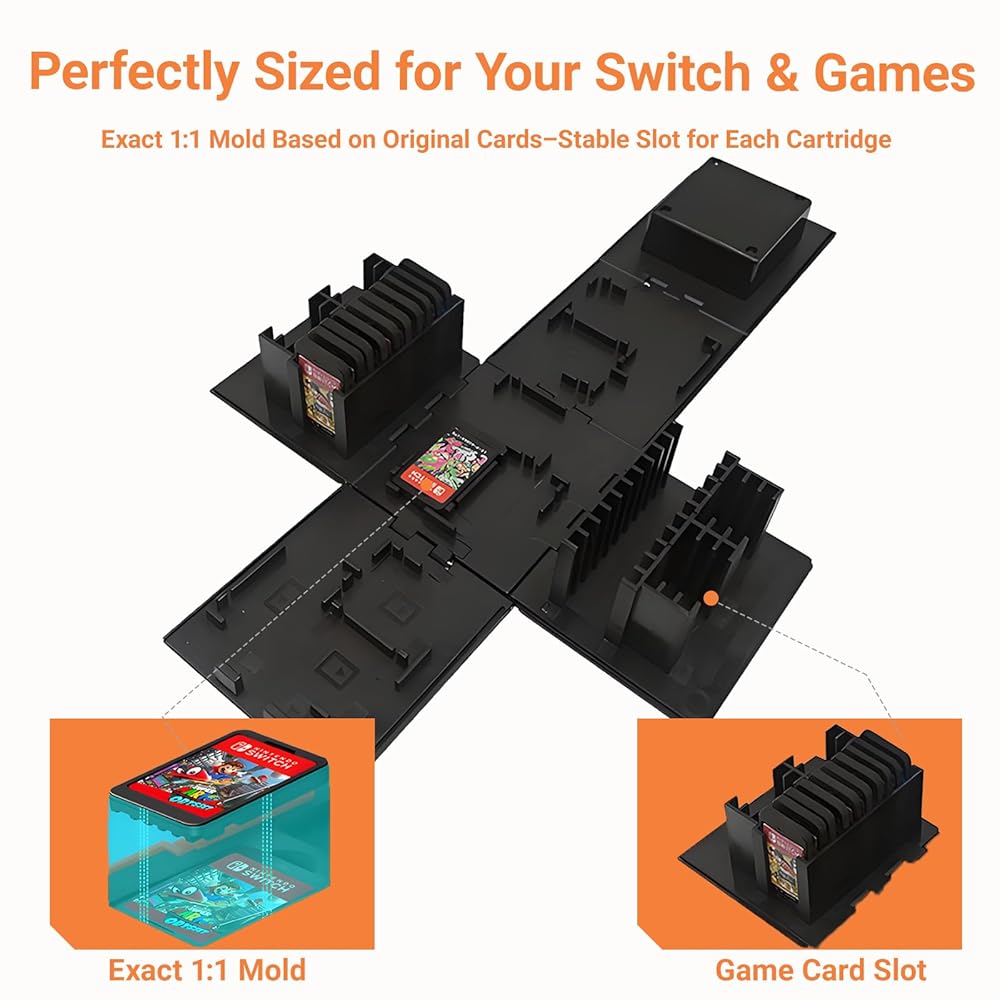 High-Quality Protection|Solid Card Slot + Compression-Resistant Shell: It uses high-quality materials that are wear-resistant and compressible to protect the game card from falling and dust. Each card slot is precisely designed according to the size of the Switch card, which is tightly fit, stable and secure, and can be carried with you with confidence.