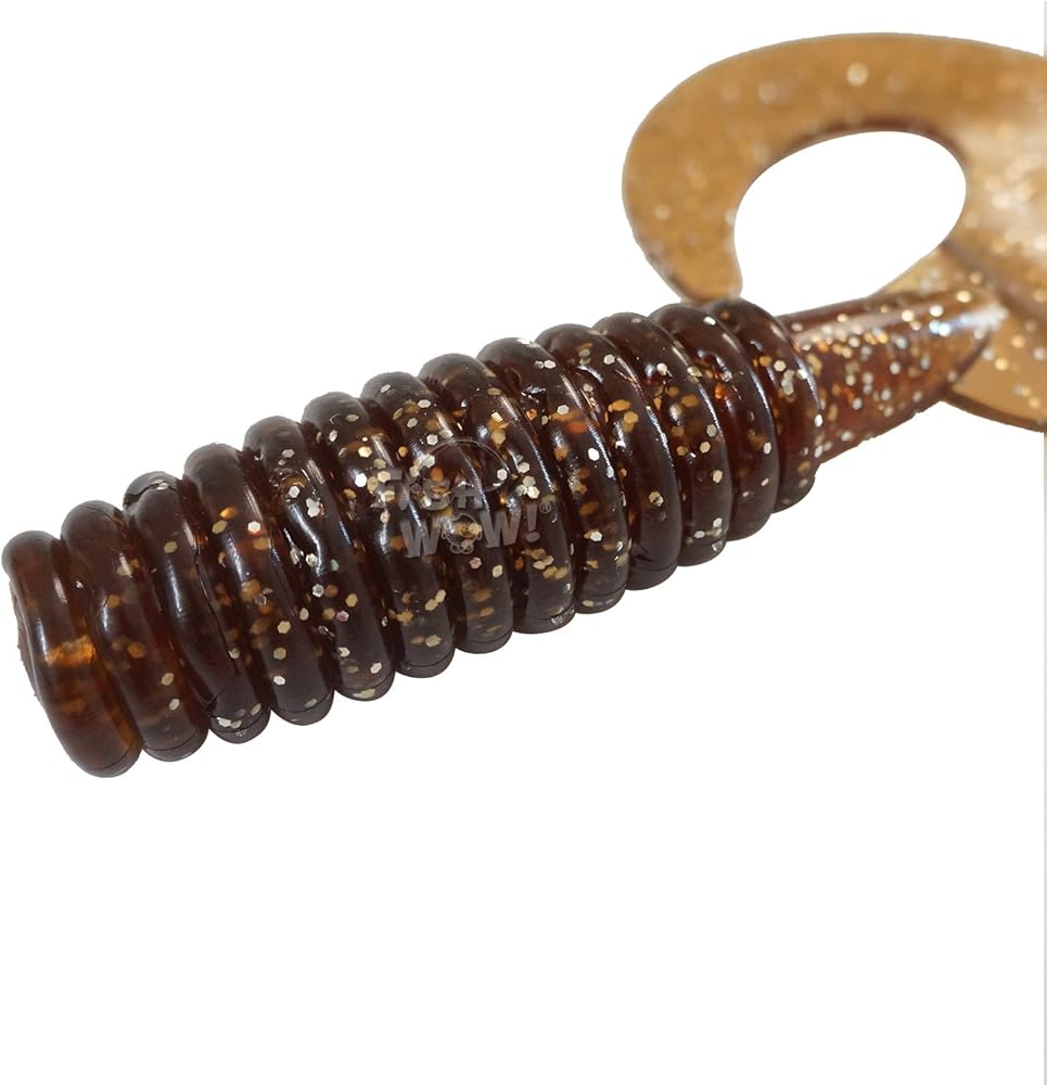 Brand Name: Fish WOW!. *Ribbed Fat Body and No Taper at the Head. *Tail is Flexible with Wiggle and Twitch Action. *It may be rigged weedless, but is best on jig head. *Rig it to a jighead with just enough weight to get you down to where you want to fish. *This is the go to bait for Smallmouth Bass, Walleyes, Northerns, Halibut, Musky, Striped Bass. *Great for Saltwater.