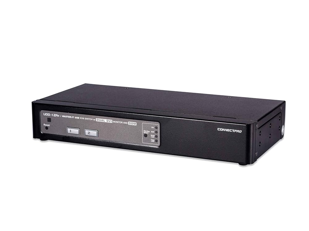 The Master-IT USB KVM Switch with Dual HDMI series embedded DDM Technology can 100% maintain the compatibility of the shared devices and connected systems. As a result the UDD+ series becomes the most reliable and robust multi monitor KVM switch in the world. UDD+ HDMI KIT series provides the premium HDMI video resolution up to 4K (3840 x 2160 30Hz) on two HDMI monitors. The UDD-12A+HDMI-KIT, as with all ConnectPRO KVM switches, features all-the-time active DDC/EDID communication, which makes this switch Windows 7/8/10 compatible. Some additional features include: Built-In IR remote receiver (remote not included), RS-232 control and firmware upgradable and unlimited UPLINK for future expansion ( for more than 2-monitor sharing), DVI-HDMI cables interface, supporting links to the HDMI systems and links to HDMI monitor/ display, and Standard 3 Year Warranty.
