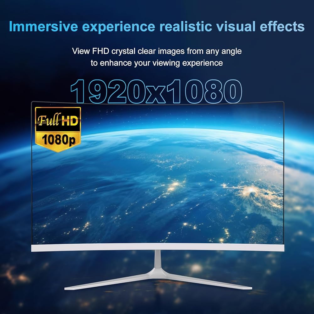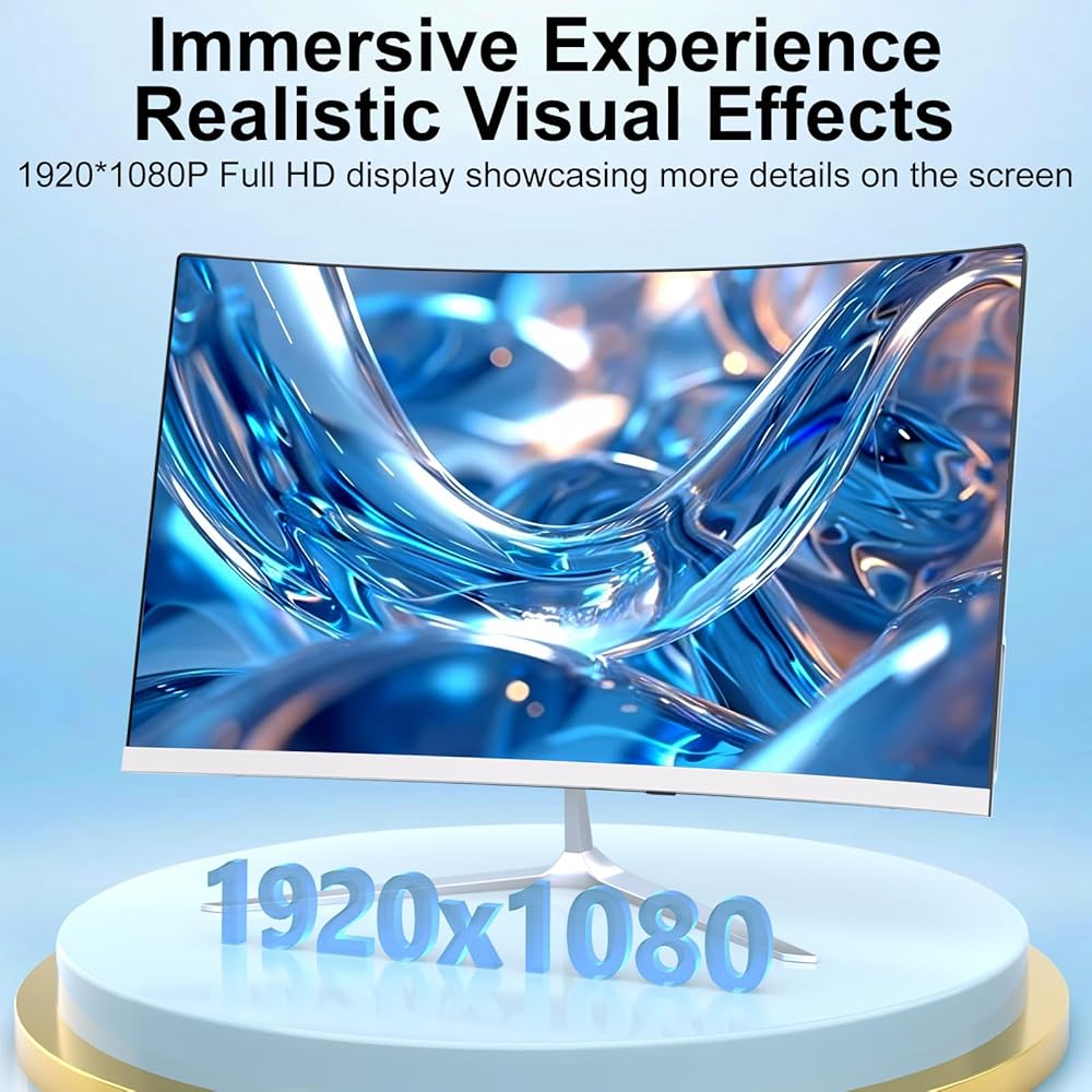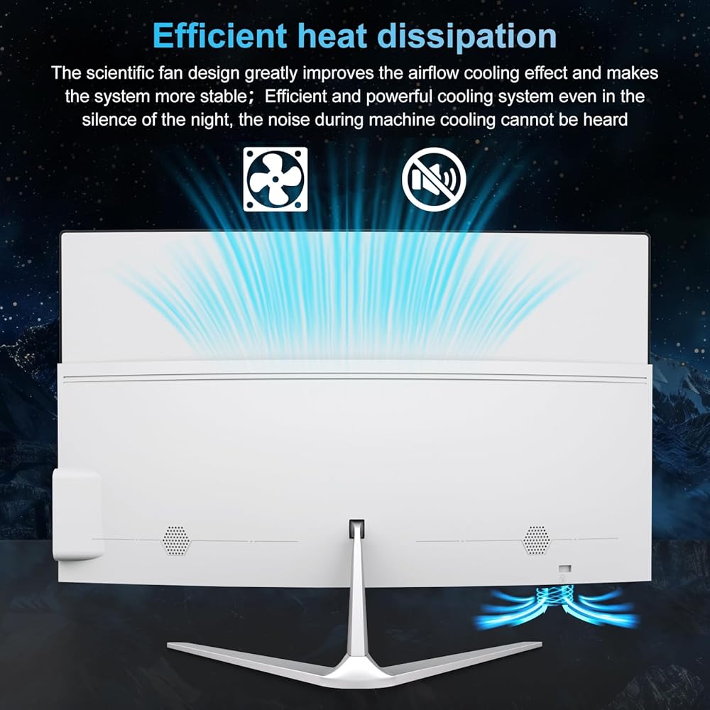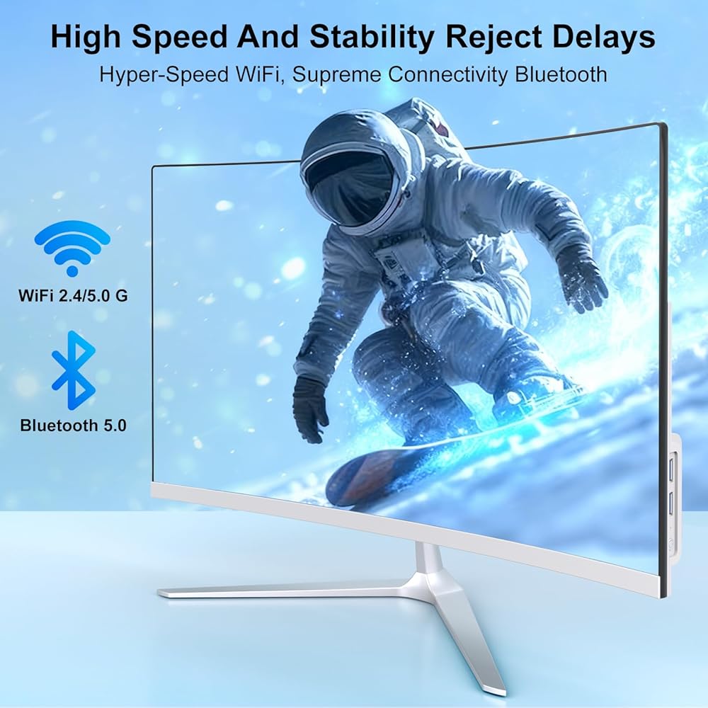 [Wireless Connection] 23 inch curved screen all-in-one desktop computer has built-in WiFi 5 and Bluetooth 4.2 functions,2.4GHz/5GHz Dual-band Wifi,enjoy high-speed and stable data transmission, Bluetooth 4.2 can quickly connect various Bluetooth devices, such as Bluetooth mouse, keyboards, speakers, etc.