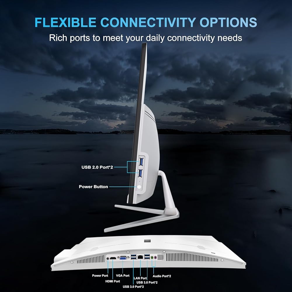 [Multi Port]Our all-in-one desktop computer has a wide range of ports, including 4x USB 3.0 ports, 2x USB 2.0 ports, 1x LAN ports, 1x HDMI ports, 1x VGA ports, 1x audio jack and power input, allowing for the connection of multiple devices, ensuring that the all-in-one computer is ready for various scenarios.