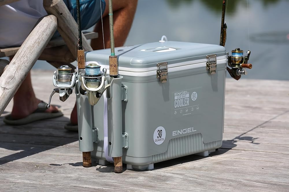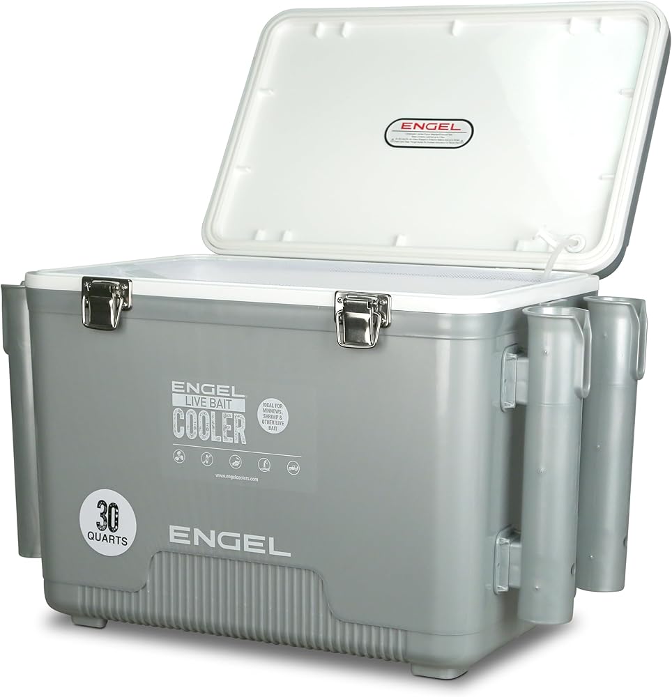 MULTIPLE SIZES AND COLORS AVAILABLE: The Engel bait tank is available in 7.5Qt, 13Qt, 19Qt and 30Qt. Larger Liver Bait Pro 30Qt ships with the larger ENG-AP4 XL Lithium Ion Aerator and 4 Rod holders. Additionally, you can choose between silver or tan color options to suit your personal style.