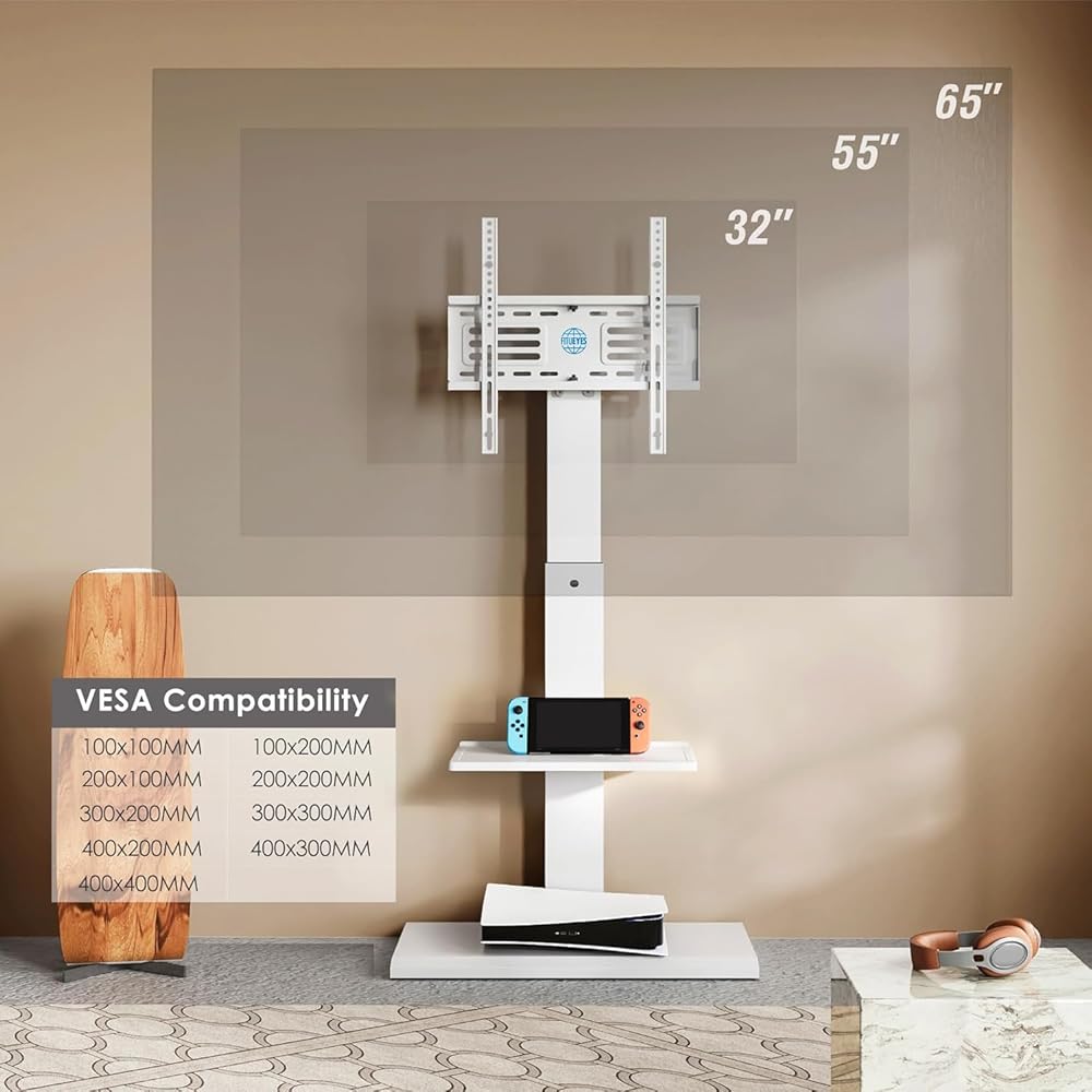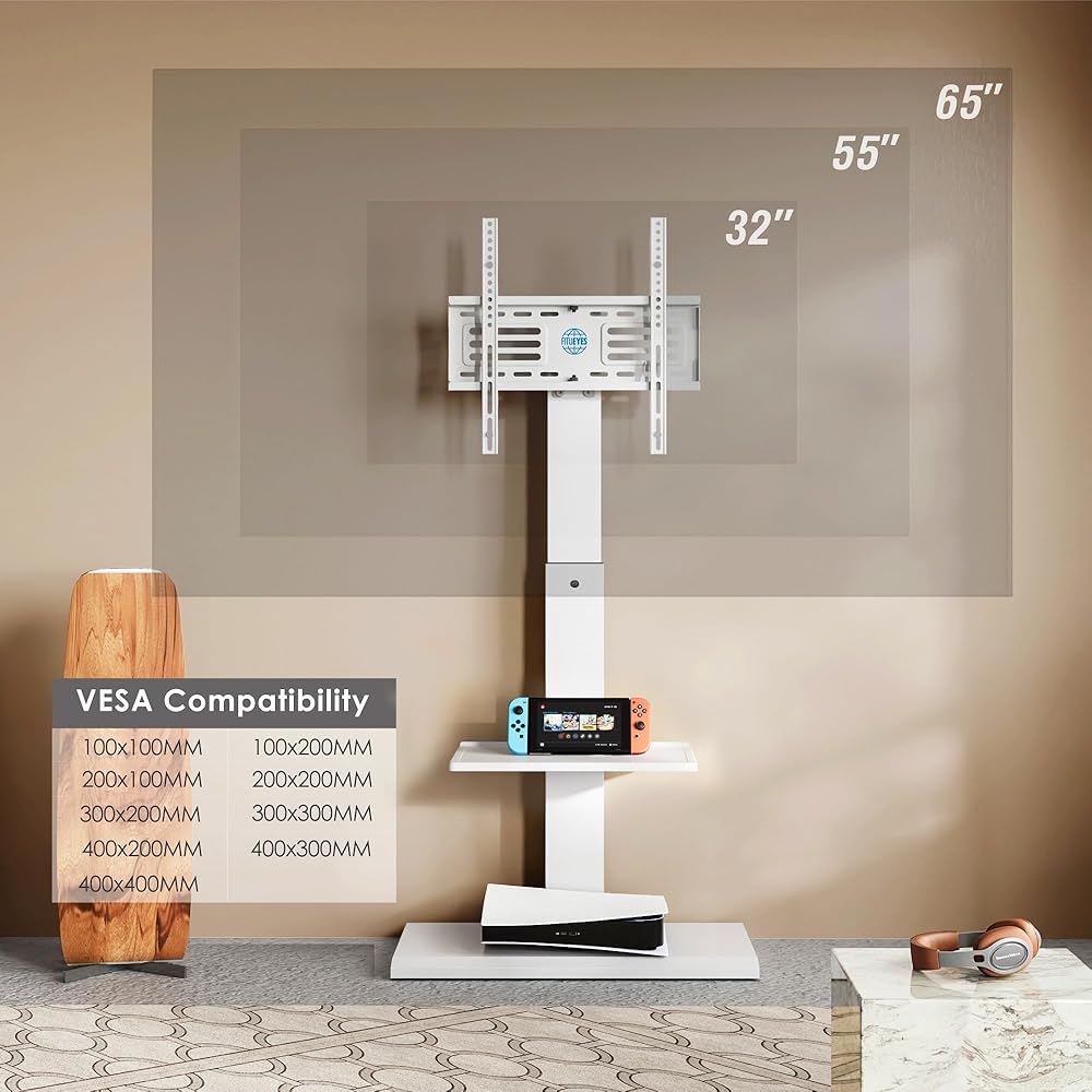 TV Stand for 32-65 Inch TVs: FITUEYES floor TV stand is compatible with 32-65 inch Flat Panel or Curved Screen TVs. Please make sure your TV's VESA mounting holes fall between 100x100 to 400x400 mm. Suitable for the living room, bedroom, office, and etc