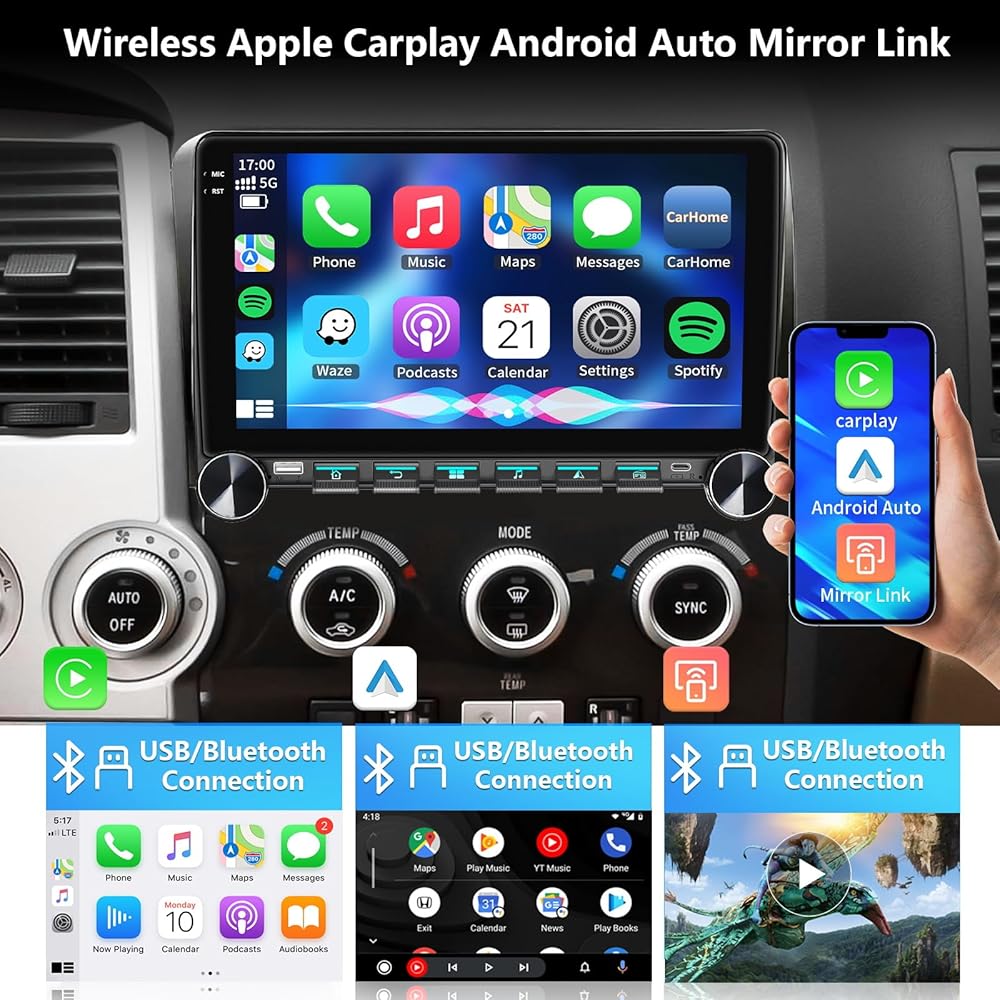 【wireless Carplay & Android Auto &Mirror Link】 This unit supports wireless Apple Carplay, Android Auto and Mirror Link. Easy to connect. After connecting, you can use mobile phone Online navigation and Bluetooth hands-free calls. You can use mobile phone music, movies and other entertainment