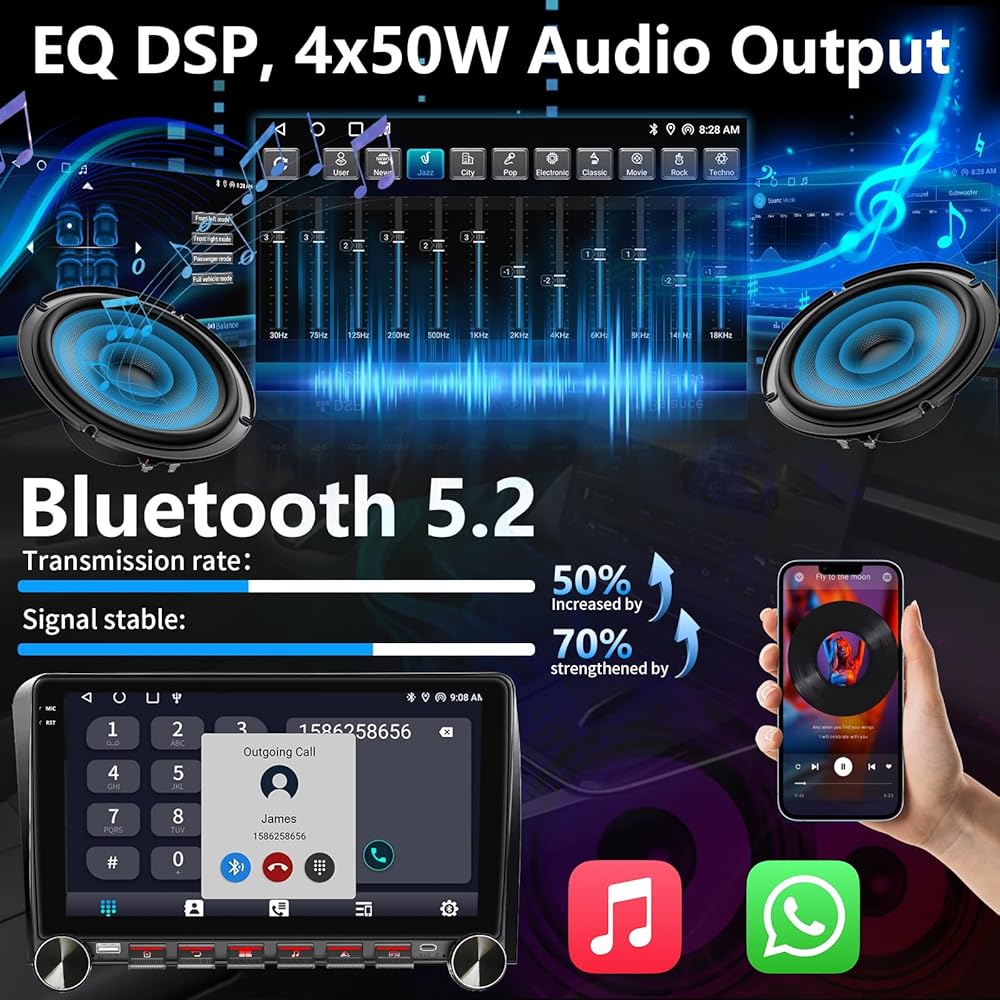【FM Radio /Bluetooth /USB/ DSP EQ/Audio Input Output】 Support FM Radio, FM1/FM2/FM3 87.5-108 MHz, you can listen the radio which is your interested. You can also play local music via Bluetooth/USB. Built-in DSP EQ, you can set your favorite music style. It has RCA Input/Output .If you have other audio devices in your car, you can connect them through the RCA plug at the back.