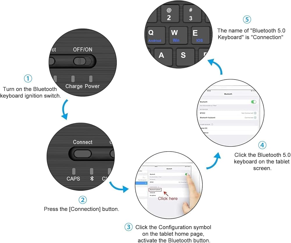 - Pulsa el botón «Conectar» para activar el Bluetooth del teclado.