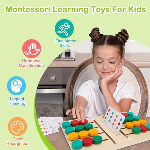 【Montessori Learning Toys For Kids】This montessori sensory toys for toddlers ages 3+, stimulate your child's brain while they play, color recognition training, helps to improve toddlers observation, logic skills and exercise hand-eye coordination. Super value for education learning toys for boy and girls 5-8 year old. Quiet time activities for kids, awesome montessori matching puzzles, promotes friendships with friends and parent-child relationships.