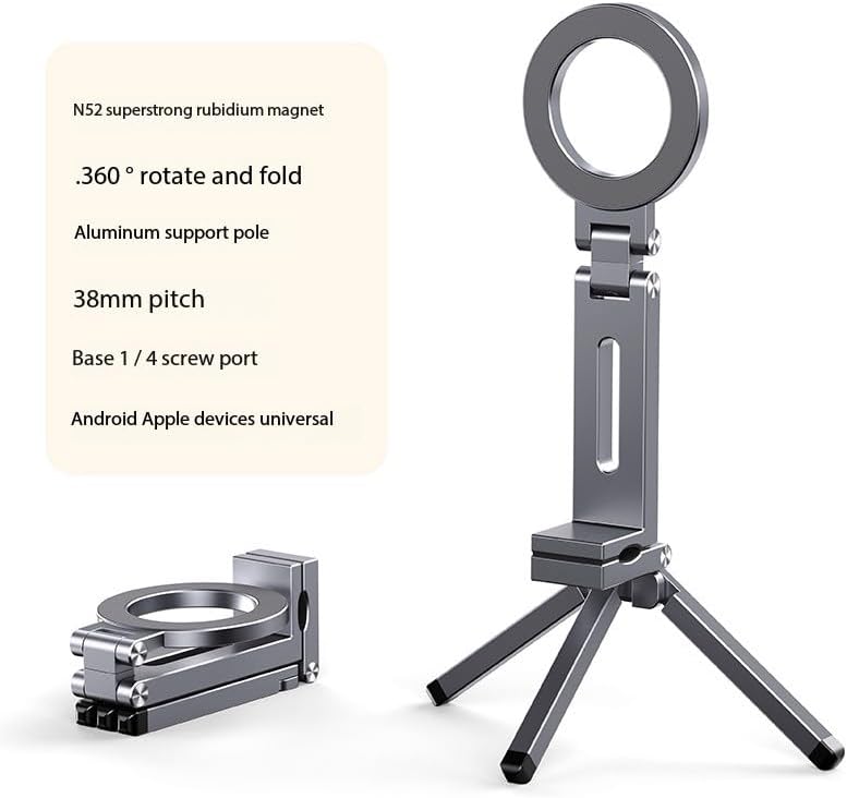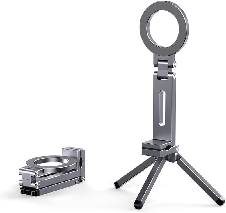 360° Rotation Magnetic Phone Stand with Tripod,Portable and Foldable Aluminium Alloy Phone Holder,Suitable for iPhone and All Mobile Phones,Essential Items for Flying or Traveling(Gray)