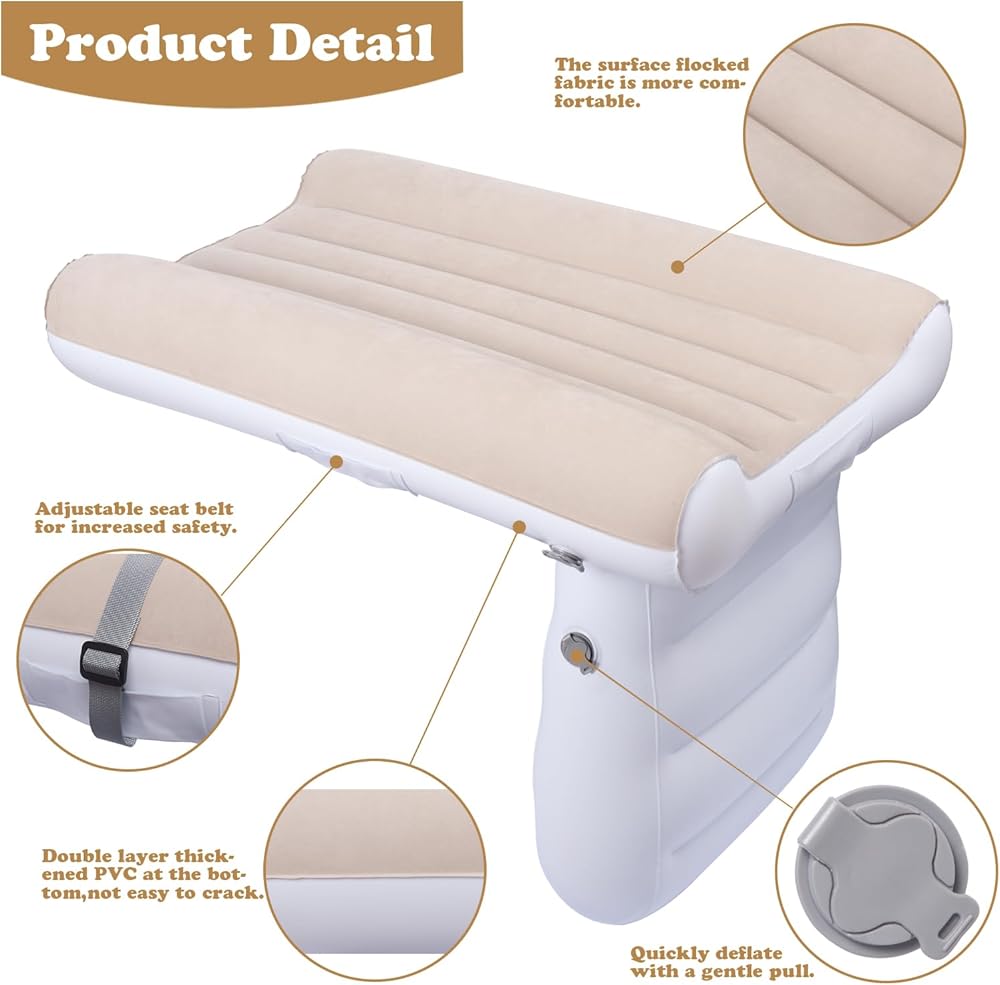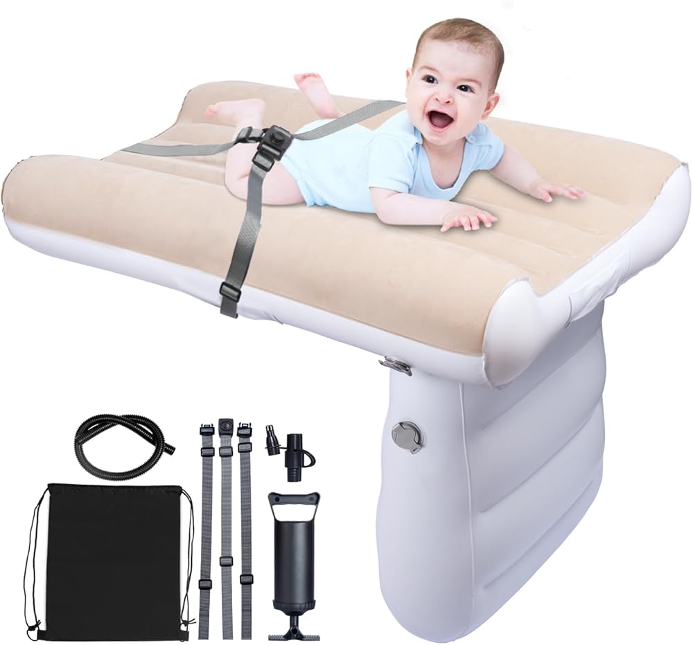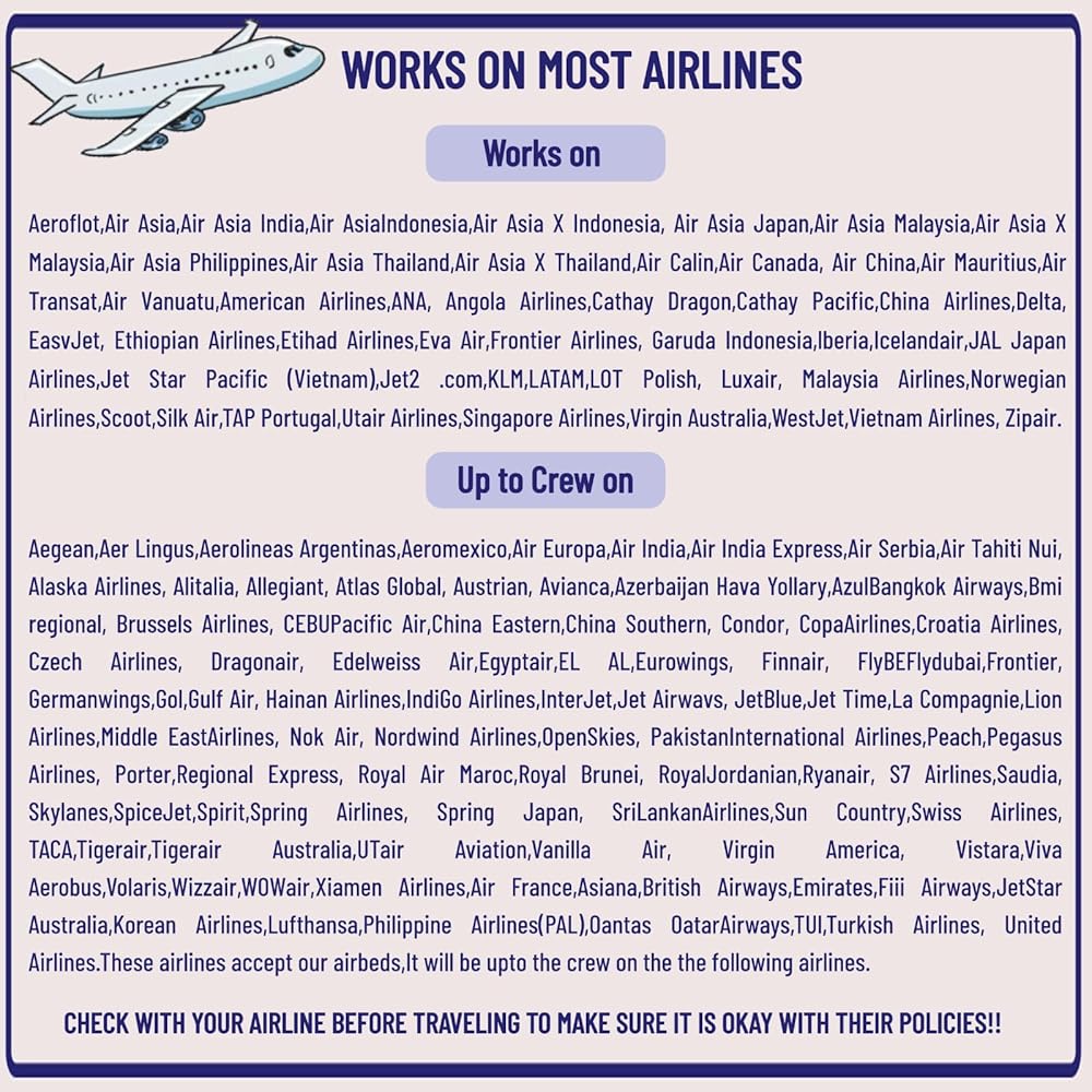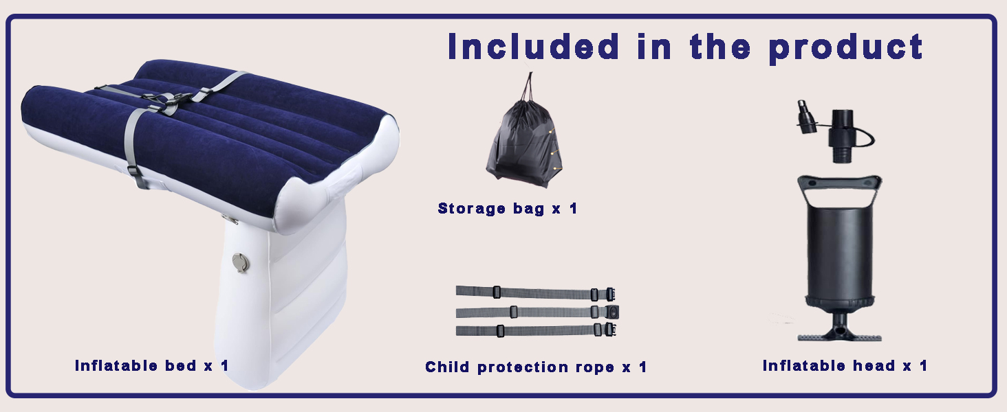 ▶【Our orders include】:Our kids airplane bed with manual pump, seat belt and carry bag,The Inflatable Kids Travel Bed.Always supervise your child when the baby travel bed is in use.
