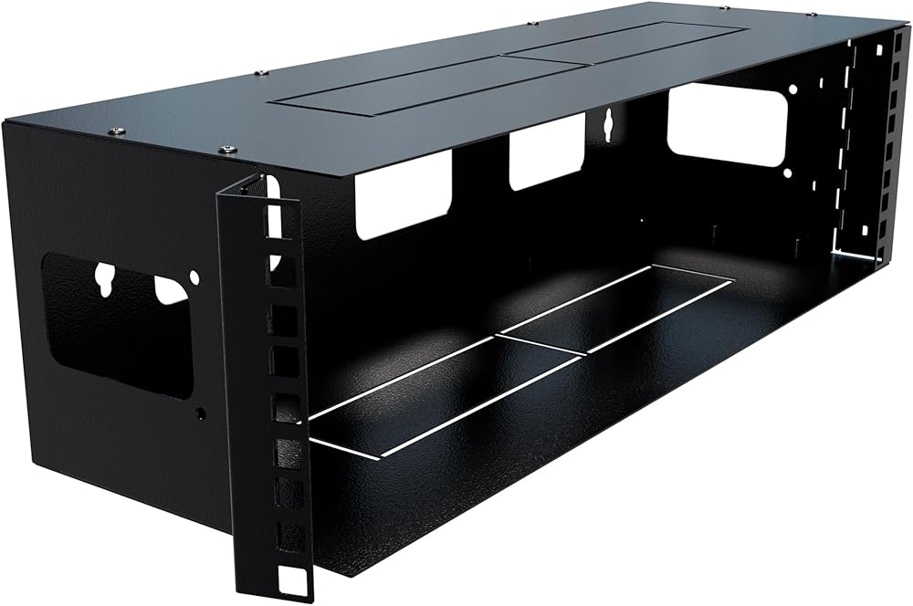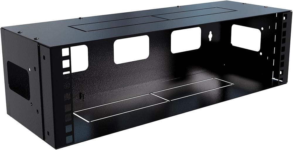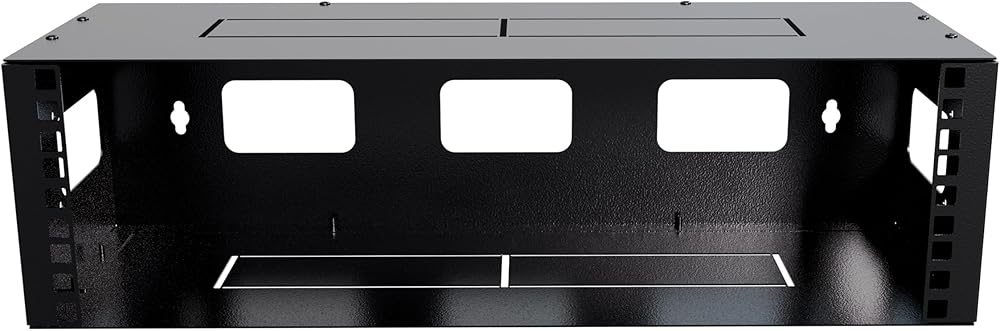 Every IT or data infrastructure needs a network rack to hold different networking elements in place securely and in an organized manner. Out of the many types available, a 3U high and 6 inches deep network rack is the most convenient due to its compact design that allows it to be used as a patch panel bracket too. Below we will focus on the benefits provided by such a specific rack with unique features and sturdy build that makes it suitable for various applications. One outstanding characteristic about this 3U network rack is its design. Anyone can easily notice that it has been made with a hinge at one corner. When mounted on the wall or under desks, this design enables the user to swing open the entire rack hence gaining immediate access to all buttons for configuration among other ports without necessarily disconnecting any cables. Where environments require frequent quick adjustments or maintenance activities this feature becomes very beneficial since sometimes equipment might be tightly fixed posing challenges when trying reach out certain parts or dismounting becomes necessary. Moreover, the strength and durability of this network rack speak volumes about its reliability. The fact that it is made from cold rolled steel gives an assurance of longevity even in harsh conditions where other materials would easily break down. This type of steel has high tensile strength coupled with good ductility making them resistant against deformation caused by heavy loads or any other physical force exerted on them while in use. In addition, being strong means that when fully loaded the stability and safety levels are not compromised at all thus preventing damages due to vibrations or accidental knocks which might occur during transportation processes. To add on to this professional appearance black finishing has been done so as protect against rusting as well. The standard hole size of this 3U network rack is another notable advantage. These holes are spaced 16.5 inches apart, making it a breeze to securely affix the rack to wall studs. This uniform spacing also means that it can work with many different types of mounting hardware thus simplifying installation. Regardless if you're setting up your home network in a small business office or even inside data center this feature guarantees the rack will be safely and securely mounted on any wall surface. There's also the matter of space efficiency that makes this rack so appealing. It has a maximum mounting depth of 6 inches (15 cm) which enables it accommodate various networking devices while still keeping them within close reach thanks to its shallow design. Moreover, being able to support up to 28 lbs (13 kg), this item can hold quite an amount of equipment without wobbling around dangerously. Considering depth and weight capacity alone you can tell that it's suitable for patch panels as well switches right through routers and other similar hardware used within networks.