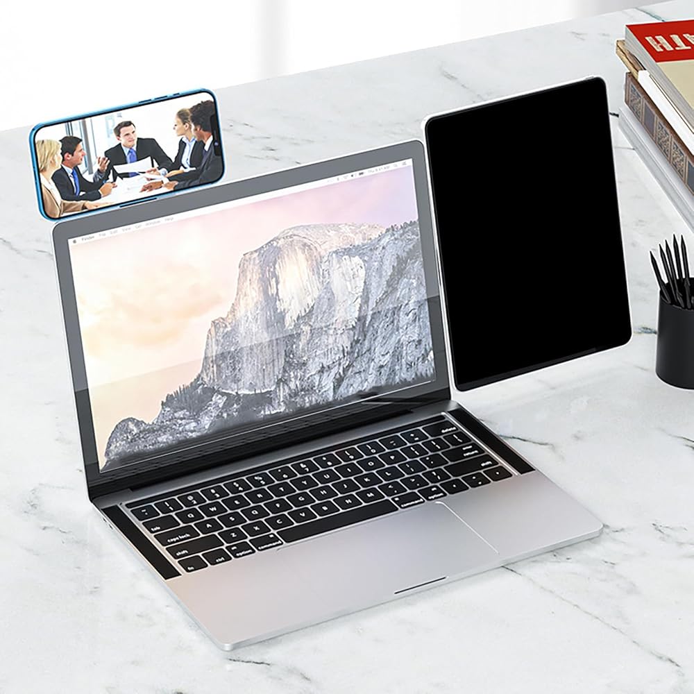 1. SIMULTANEOUS USE: Laptop phone holder supports dual screen display of cell phone and computer to enhance work efficiency.