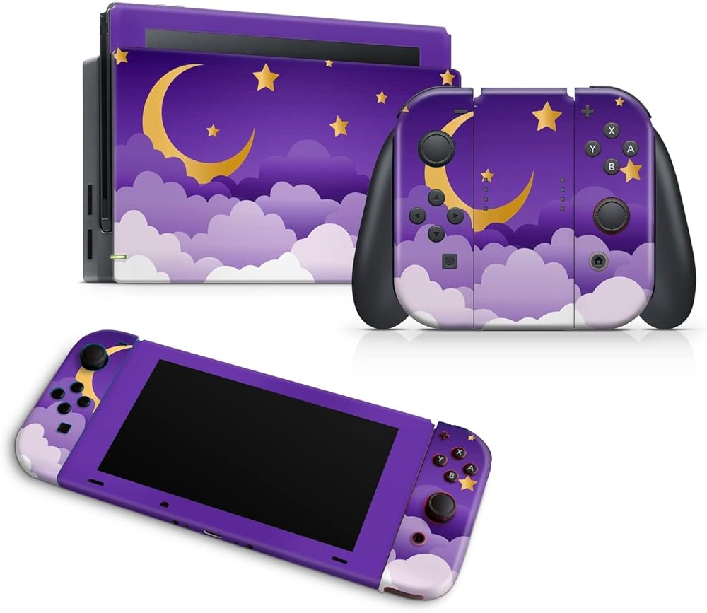 ZOOMHITSKINS Compatible with Switch Skin Cover Moon Cloud Gold Pastel Sky Star Purple Lavender Fluffy Colored Lilac Violet Night Kawaii 3M Vinyl Decal Sticker Wrap, Made in The USA