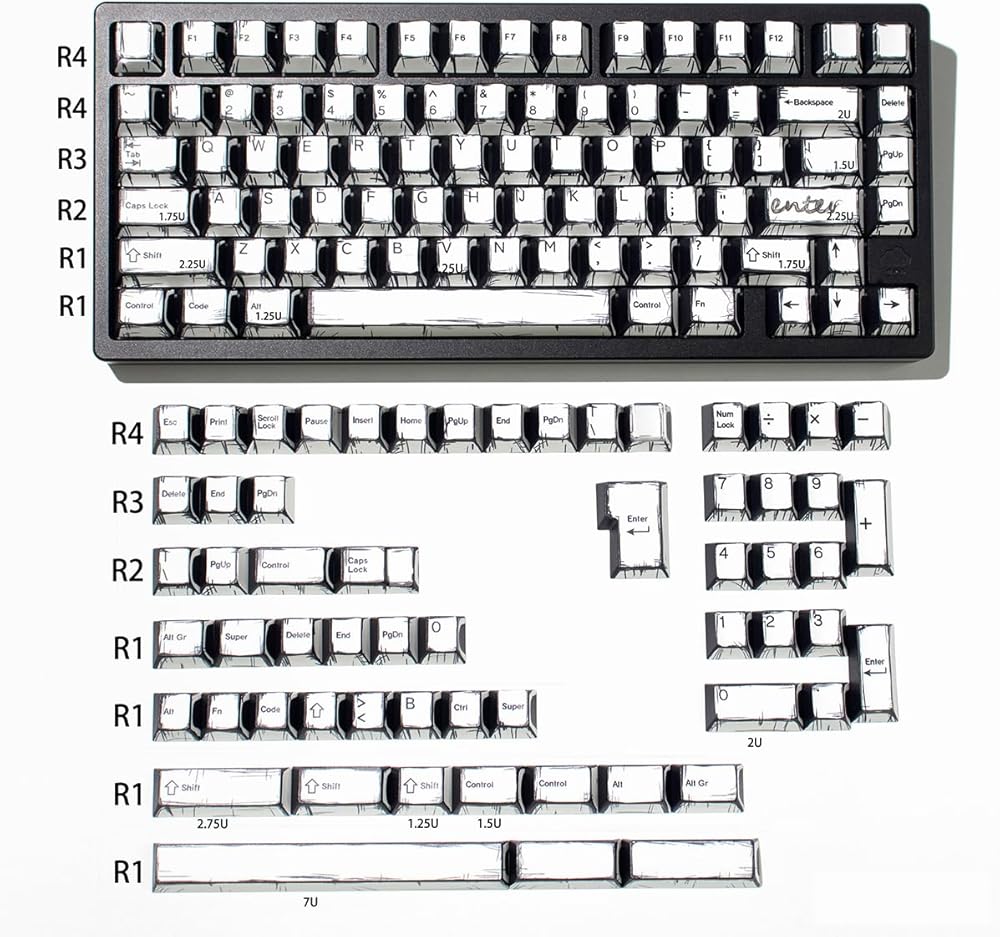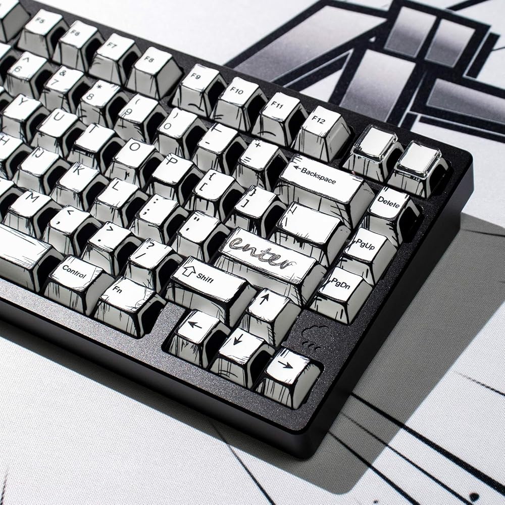Japanese Manga Keycaps: Inspired by classic comic books and graffiti art, these manga keycaps transform your keyboard into a vibrant manga masterpiece.The lifelike lines and intricate details enhance aesthetics, making your setup a unique focal point that immerses you in the comic world